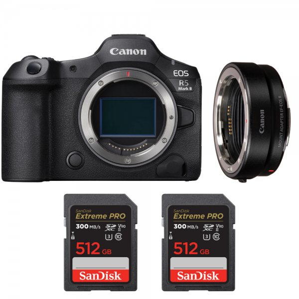 Canon EOS R5 Mark II + EF-EOS R + 2 SanDisk 512GB Extreme PRO UHS-II SDXC 300 MB/s