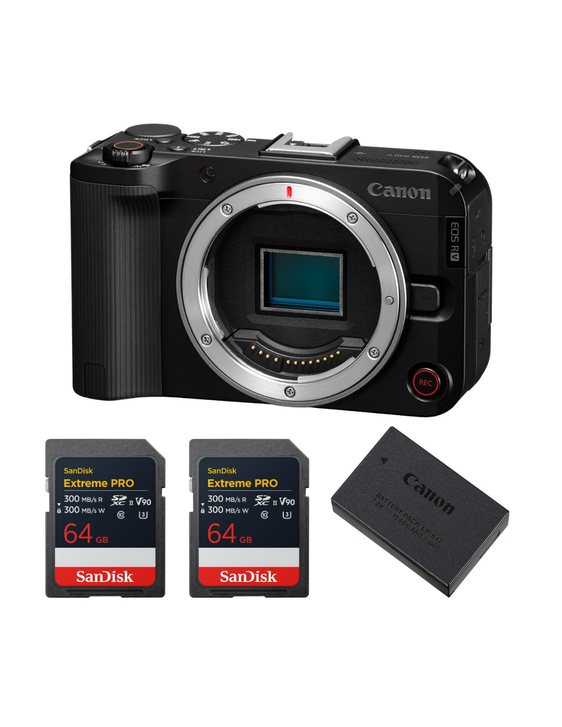 Canon EOS R50 V + 2 SanDisk 64GB Extreme PRO UHS-II SDXC + Canon LP-E17