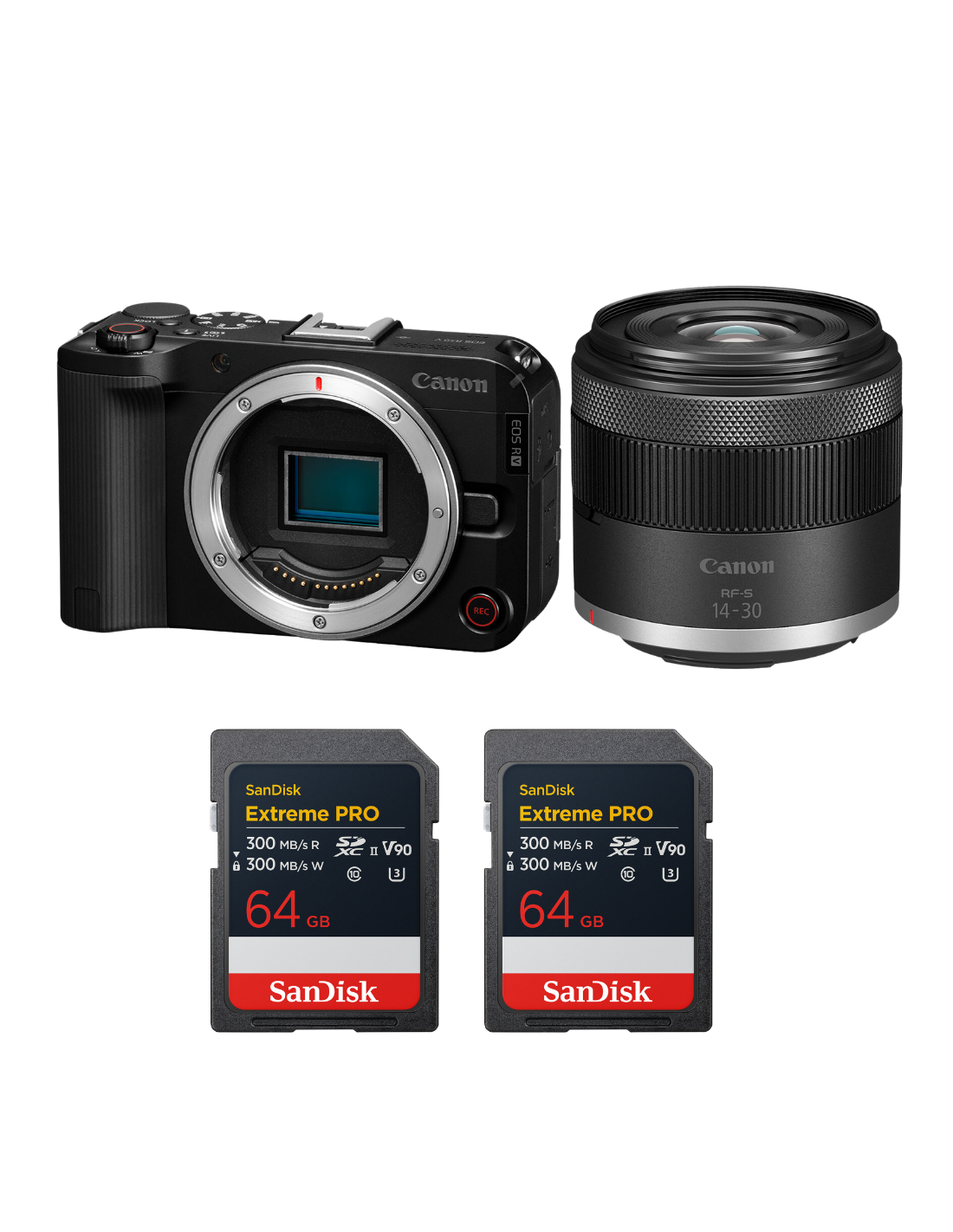 Canon EOS R50 V + RF-S 14-30mm f/4.5-6.3 IS STM PZ + 2 SanDisk 64GB Extreme PRO UHS-II SDXC