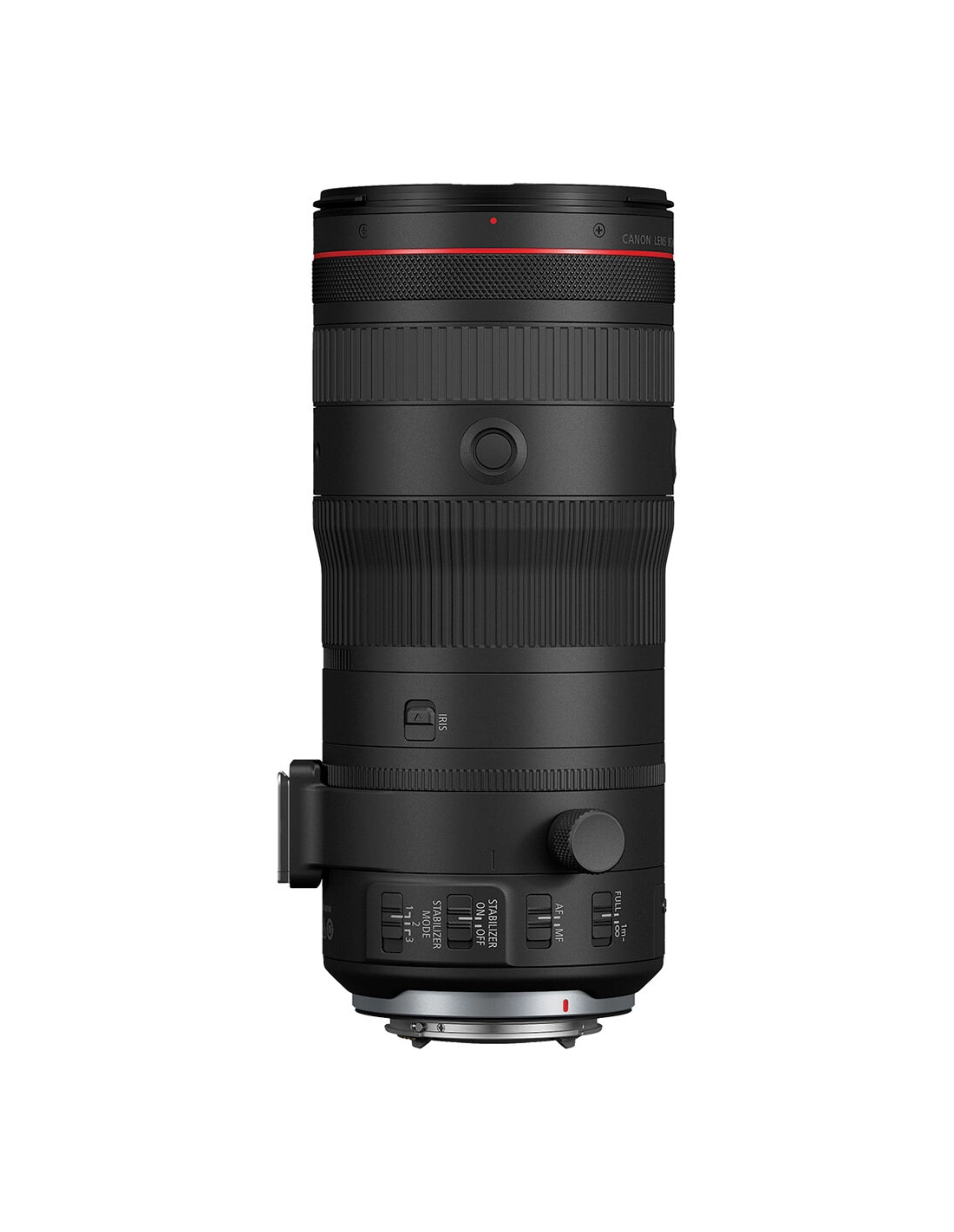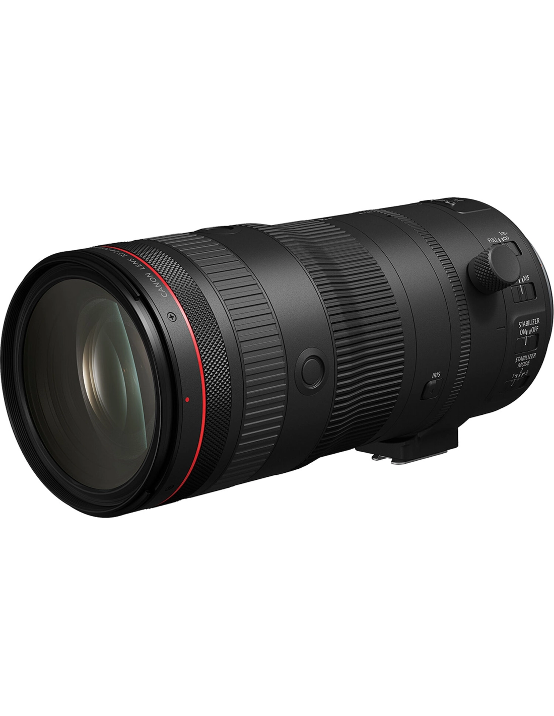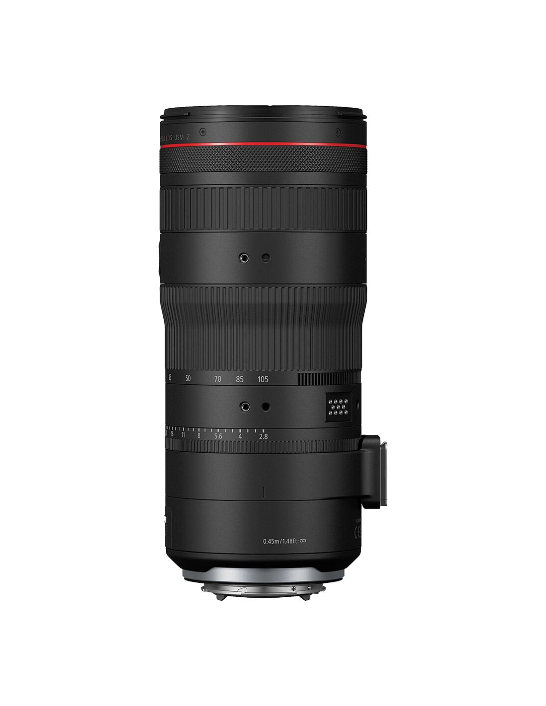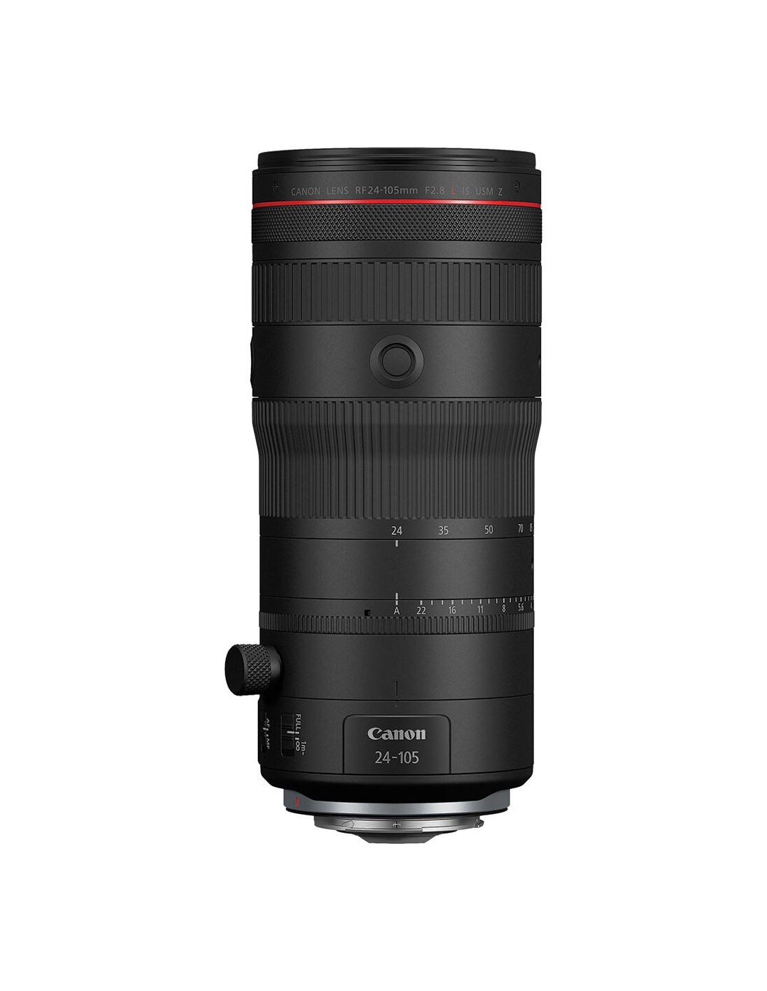 - Óptica (objetivo RF 24-105mm f/2.8) : rango focal de 24-105mm (zoom x4,4) con apertura máxima constante de f/2.8 (o mínima de f/22). Estabilización de imagen óptica integrada (hasta 5,5 pasos por sí sola). Fórmula óptica de alto rendimiento: 18 elementos en 15 grupos, incluyendo 4 cristales UD y 3 asféricos para minimizar las aberraciones cromáticas y distorsiones. Diafragma de 11 hojas circulares para un bokeh suave y redondo. Motores de autoenfoque Dual Nano USM que aseguran un enfoque rápido y silencioso, perfecto para video. Anillo de control multifuncional en el barril (configurable para apertura, ISO, etc.), con opción de iris fluido para el control de apertura en video. Compatible con los adaptadores. Canon Power Zoom (opcional) para un zoom motorizado fluido en uso de video.