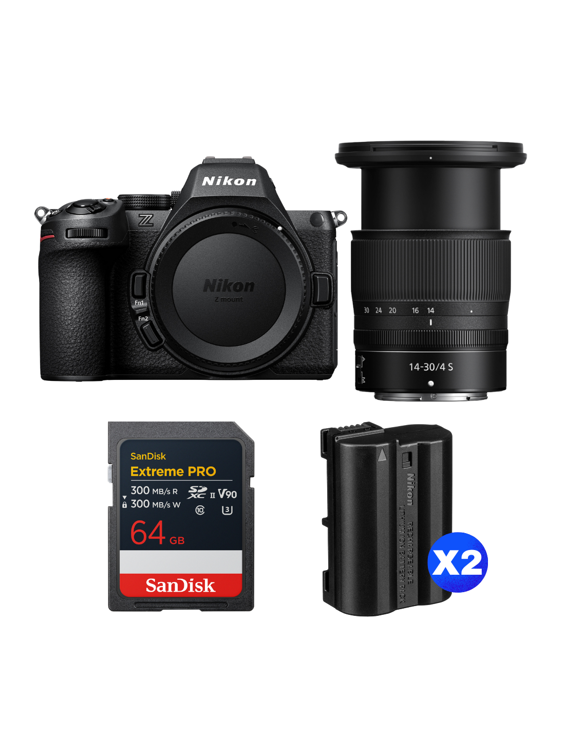 Nikon Z5 II + 14-30mm f/4 S + 1 SanDisk 64GB Extreme PRO UHS-II SDXC + 2 Nikon EN-EL15c
