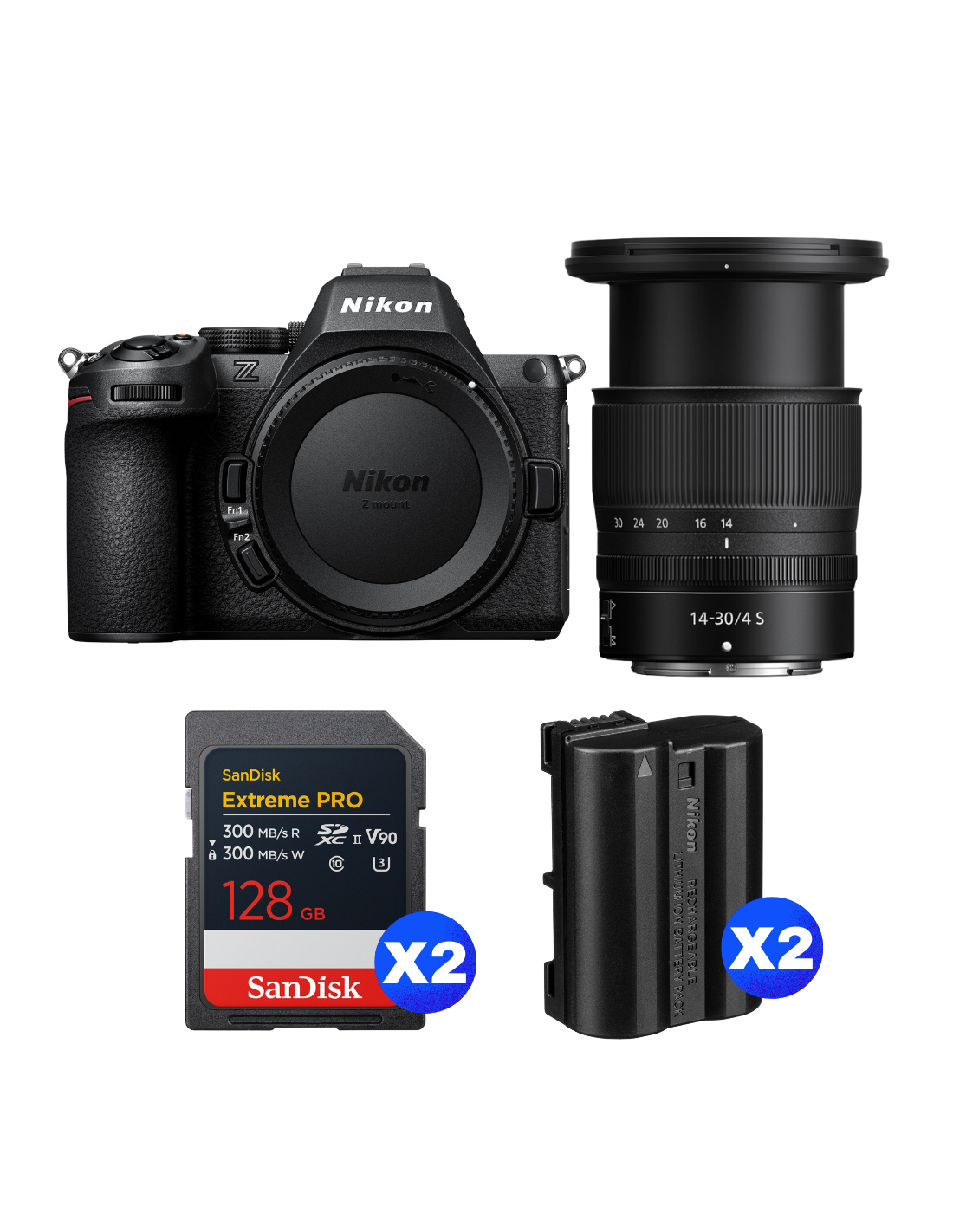 Nikon Z5 II + 14-30mm f/4 S + 2 SanDisk 128GB Extreme PRO UHS-II SDXC + 2 Nikon EN-EL15c