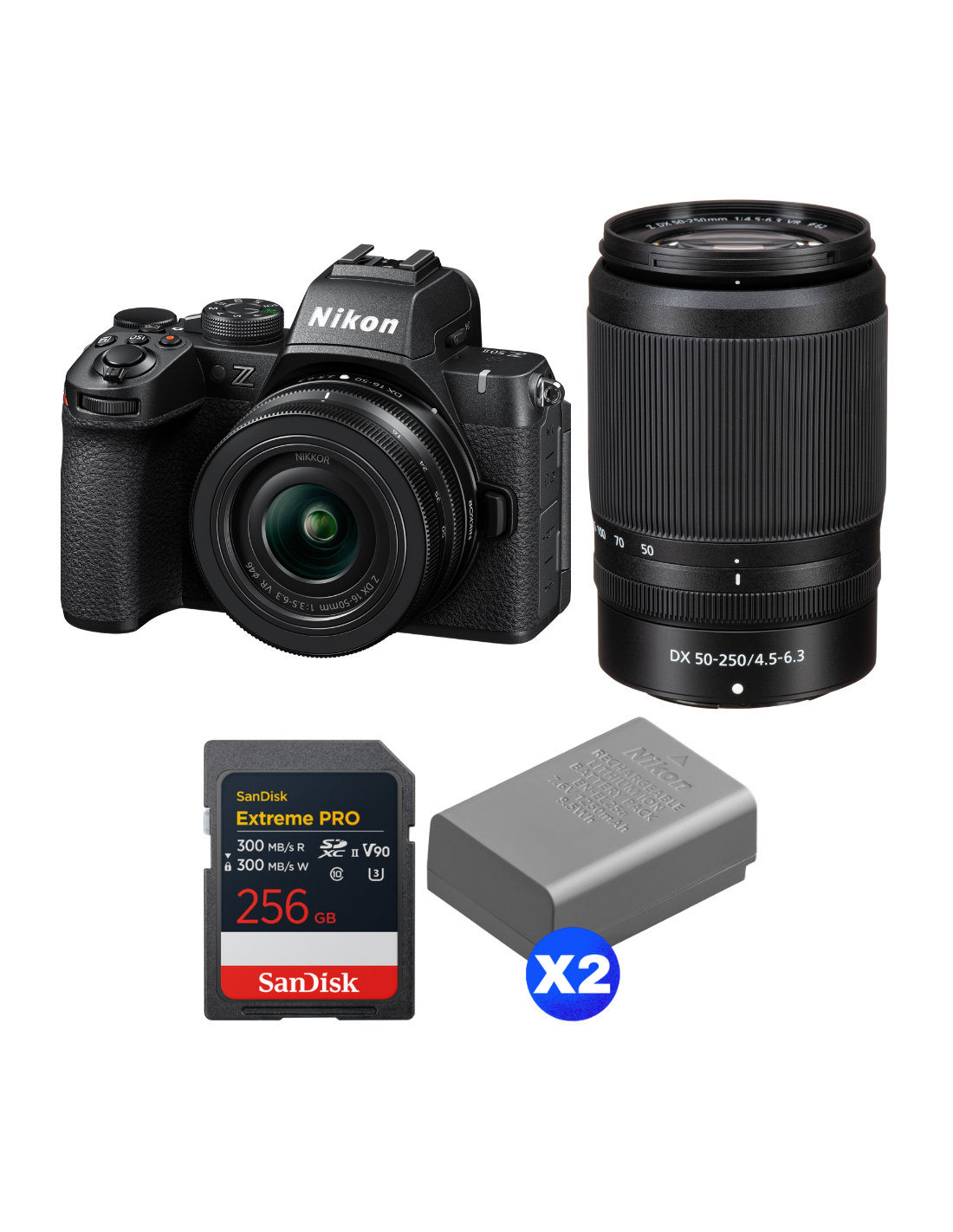 Nikon Z50 II + 16-50mm + 50-250mm + 1 SanDisk 256GB Extreme PRO UHS-II SDXC + 2 Nikon EN-EL25a