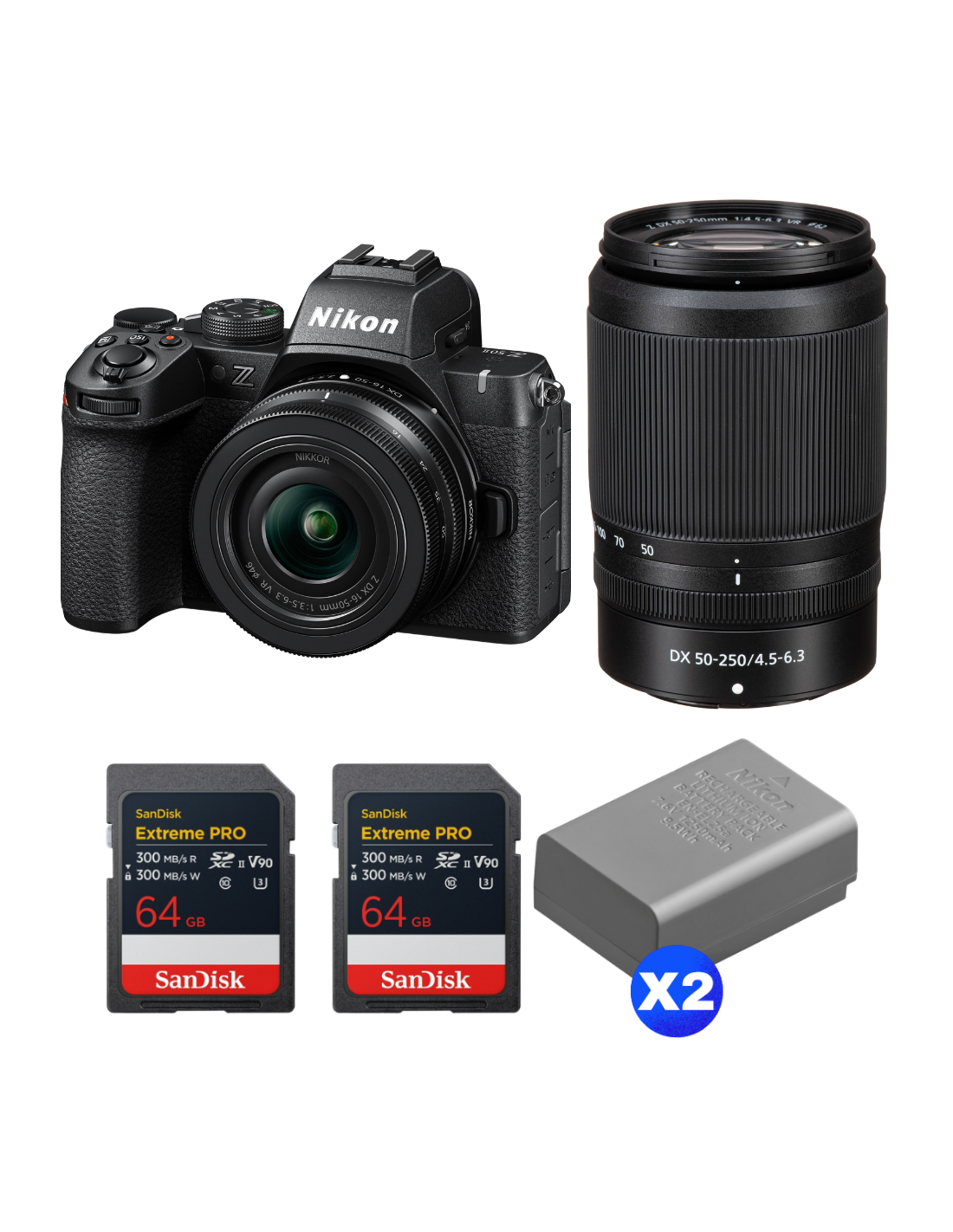 Nikon Z50 II + 16-50mm + 50-250mm + 2 SanDisk 64GB Extreme PRO UHS-II SDXC + 2 Nikon EN-EL25a