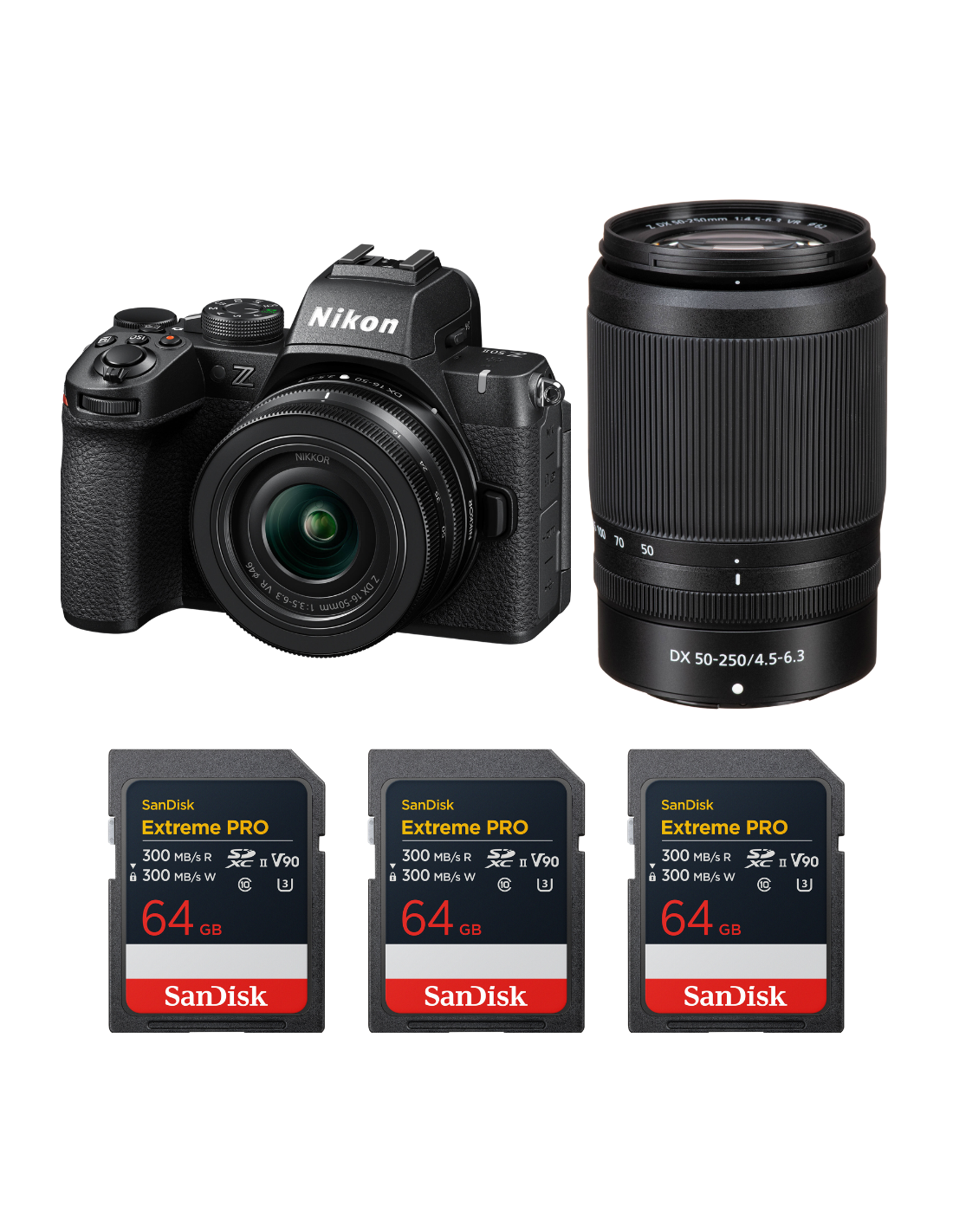Nikon Z50 II + 16-50mm + 50-250mm + 3 SanDisk 64GB Extreme PRO UHS-II SDXC