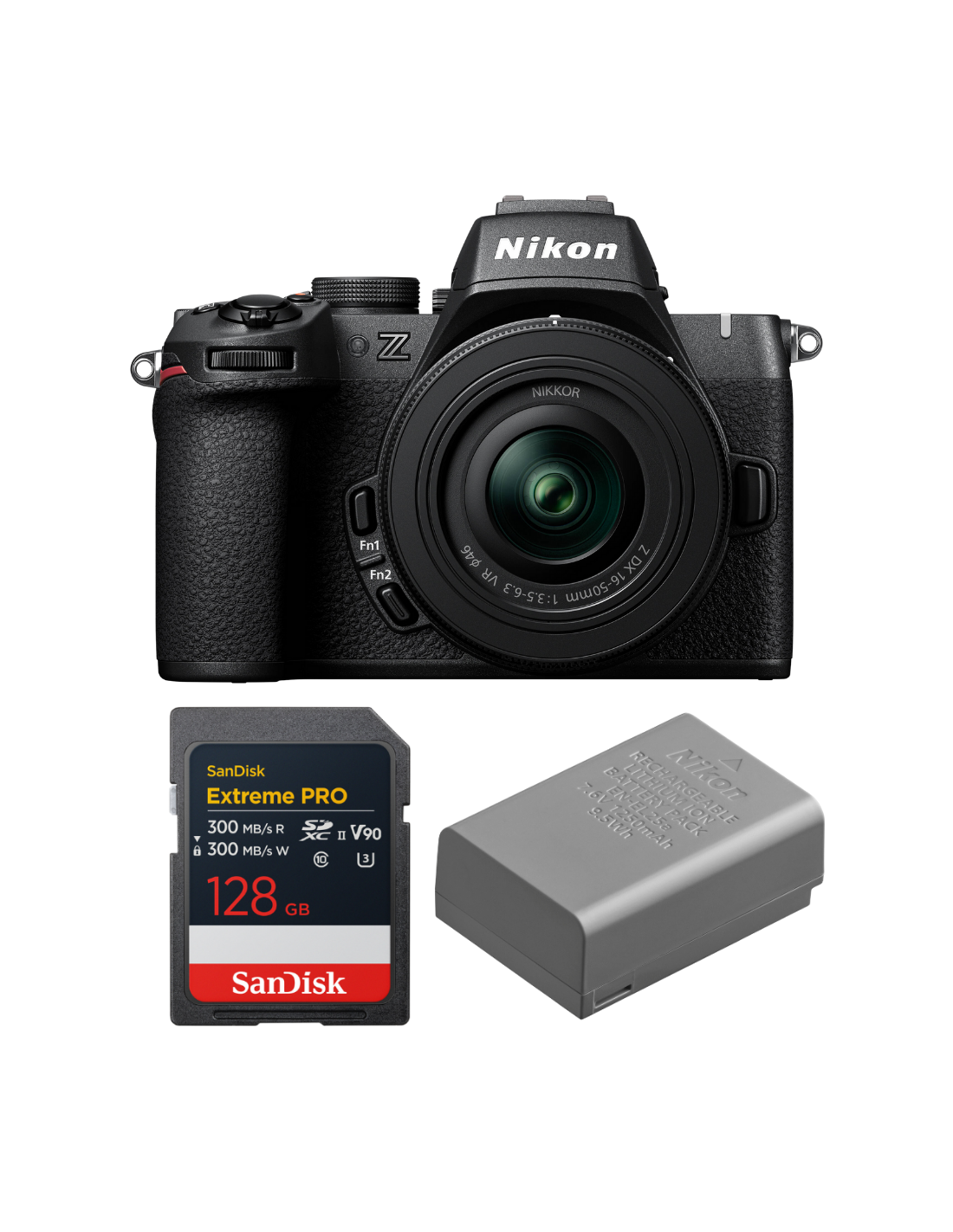 Nikon Z50 II + 16-50mm f/3.5-6.3 VR + 1 SanDisk 128GB Extreme PRO UHS-II SDXC + Nikon EN-EL25a