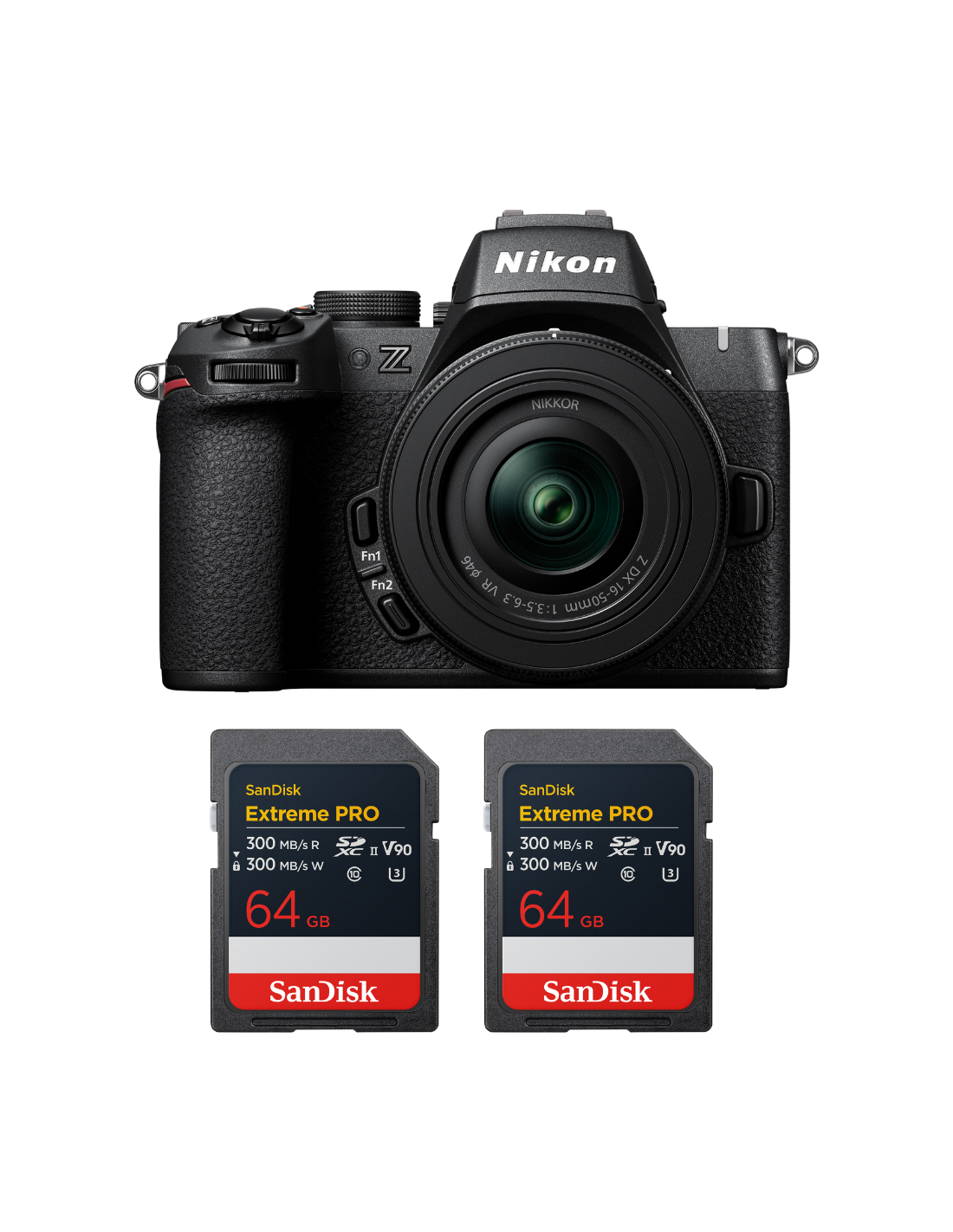Nikon Z50 II + 16-50mm f/3.5-6.3 VR + 2 SanDisk 64GB Extreme PRO UHS-II SDXC