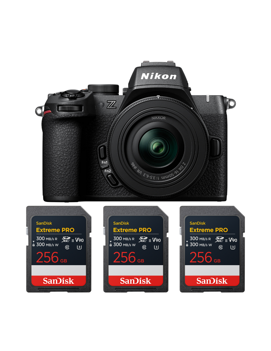 Nikon Z50 II + 16-50mm f/3.5-6.3 VR + 3 SanDisk 256GB Extreme PRO UHS-II SDXC