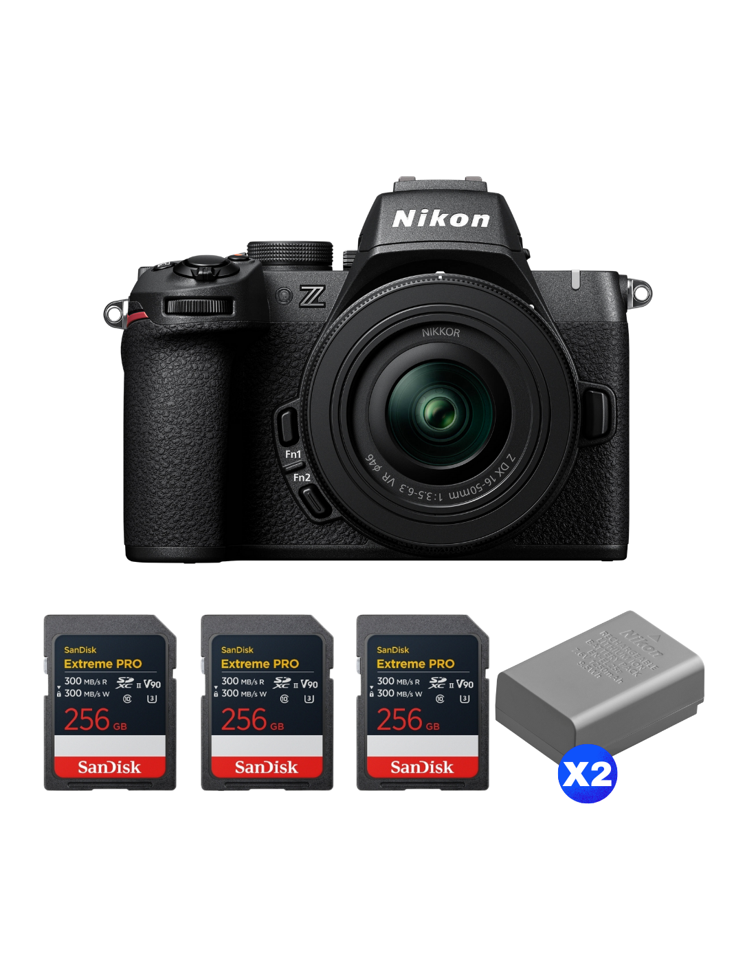 Nikon Z50 II + 16-50mm f/3.5-6.3 VR + 3 SanDisk 256GB Extreme PRO UHS-II SDXC + 2 Nikon EN-EL25a