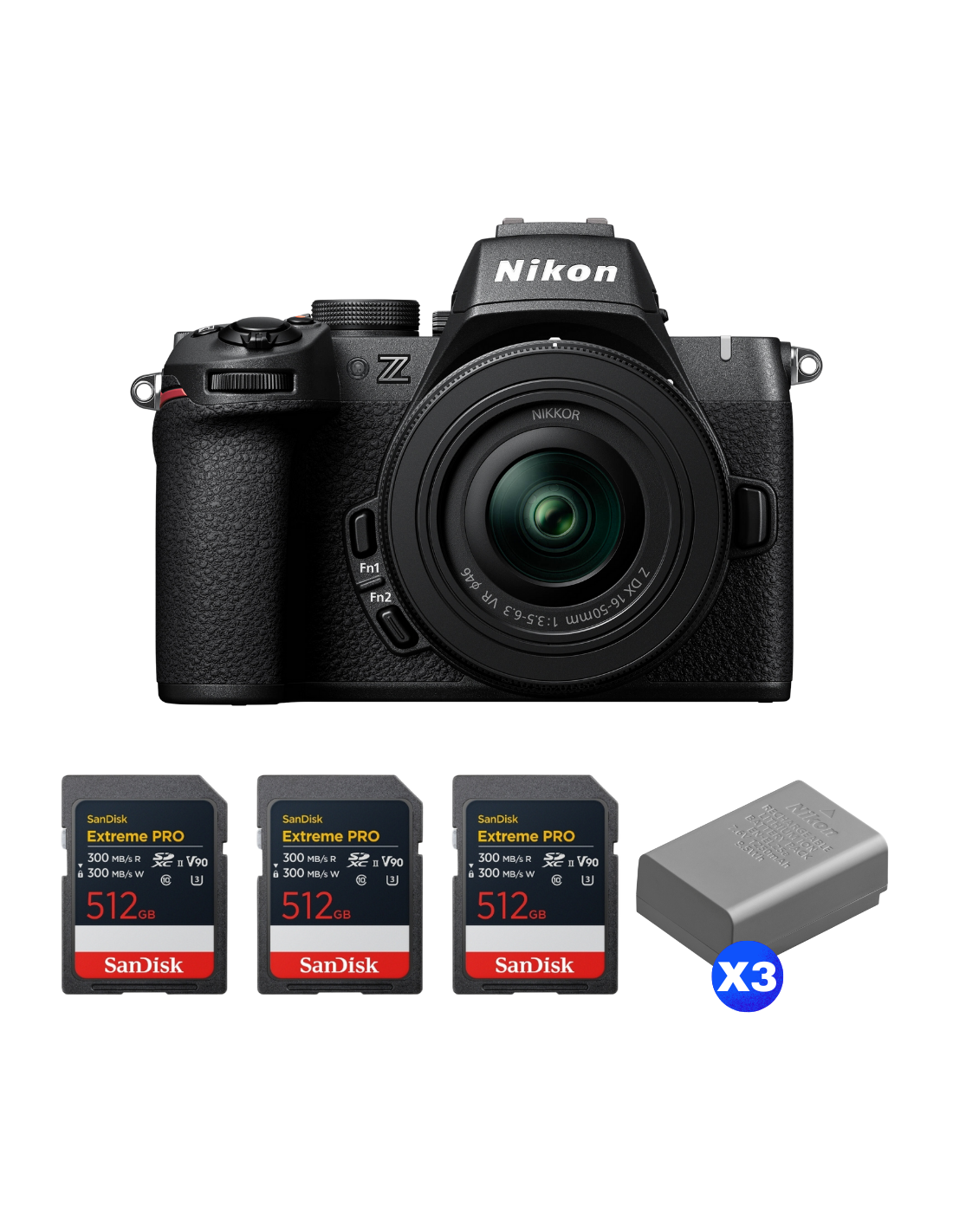 Nikon Z50 II + 16-50mm f/3.5-6.3 VR + 3 SanDisk 512GB Extreme PRO UHS-II SDXC + 3 Nikon EN-EL25a