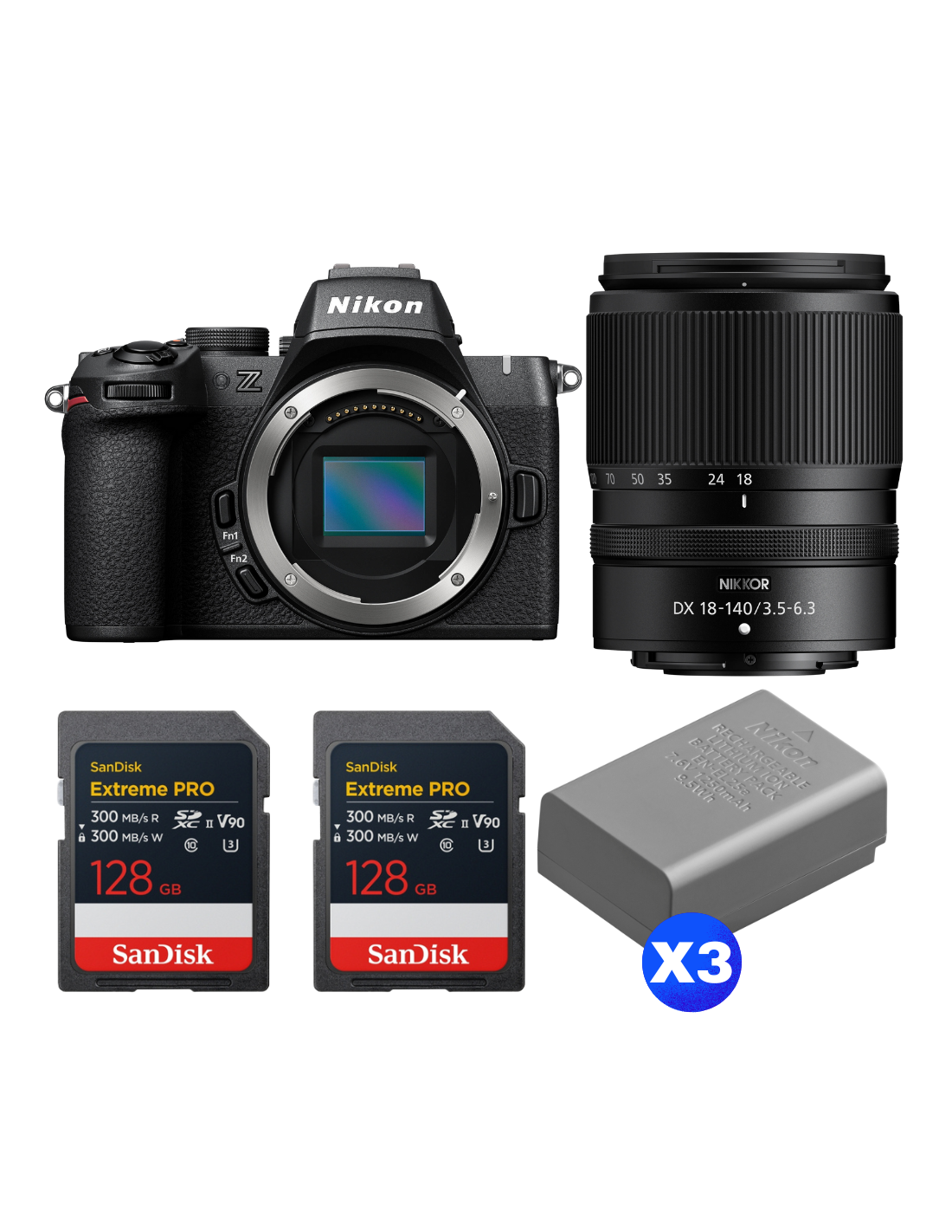 Nikon Z50 II + 18-140mm f/3.5-6.3 VR + 2 SanDisk 128GB Extreme PRO UHS-II SDXC + 3 Nikon EN-EL25a