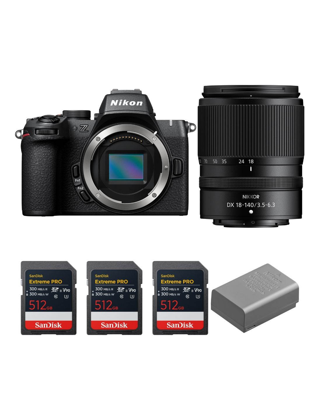 Nikon Z50 II + 18-140mm f/3.5-6.3 VR + 3 SanDisk 512GB Extreme PRO UHS-II SDXC + Nikon EN-EL25a