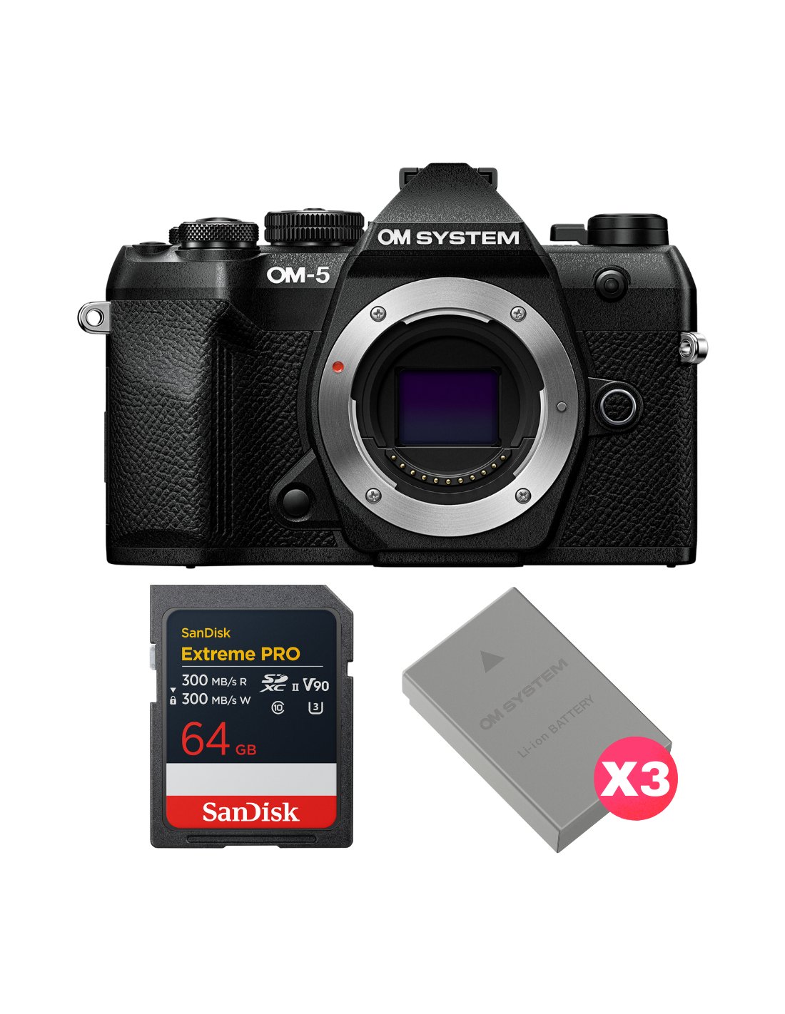 OM SYSTEM OM-5 Mark II Negra + 1 SanDisk 64GB Extreme PRO UHS-II SDXC + 3 OM System BLS-50