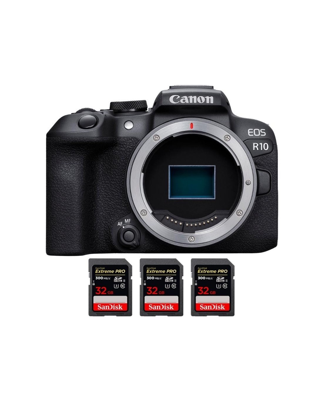 Canon EOS R10 + 3 SanDisk 32GB Extreme PRO UHS-II SDXC 300 MB/s - Cámara mirrorless APS-C