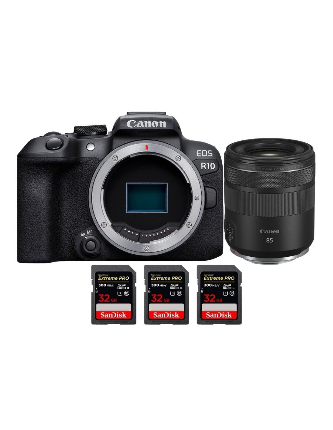 Canon EOS R10 + RF 85mm F2 Macro IS STM + 3 SanDisk 32GB Extreme PRO UHS-II SDXC 300 MB/s - Cámara evil APS-C