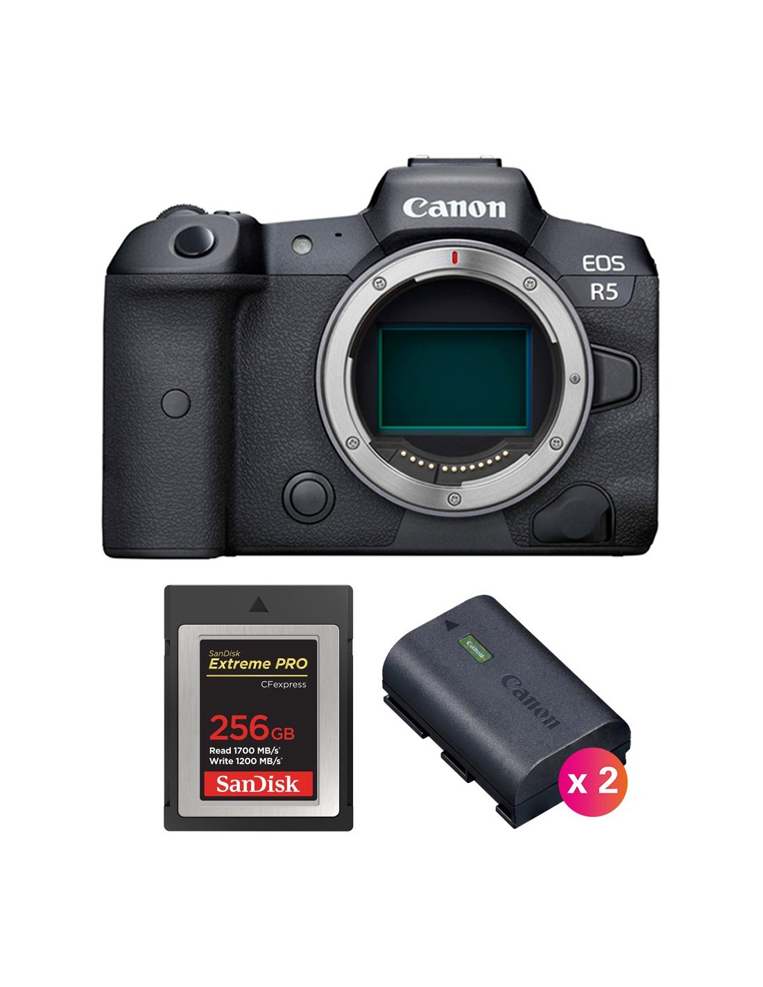 Canon EOS R5 Cuerpo + SanDisk 256GB Extreme PRO CFexpress Type B + 2 Canon LP-E6NH - Camara mirrorless