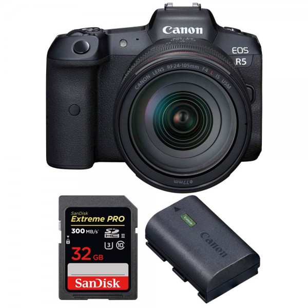 Canon EOS R5 + RF 24-105mm f/4L IS USM + SanDisk 32GB Extreme PRO UHS-II SDXC 300 MB/s + Canon LP-E6NH - Camara mirrorless