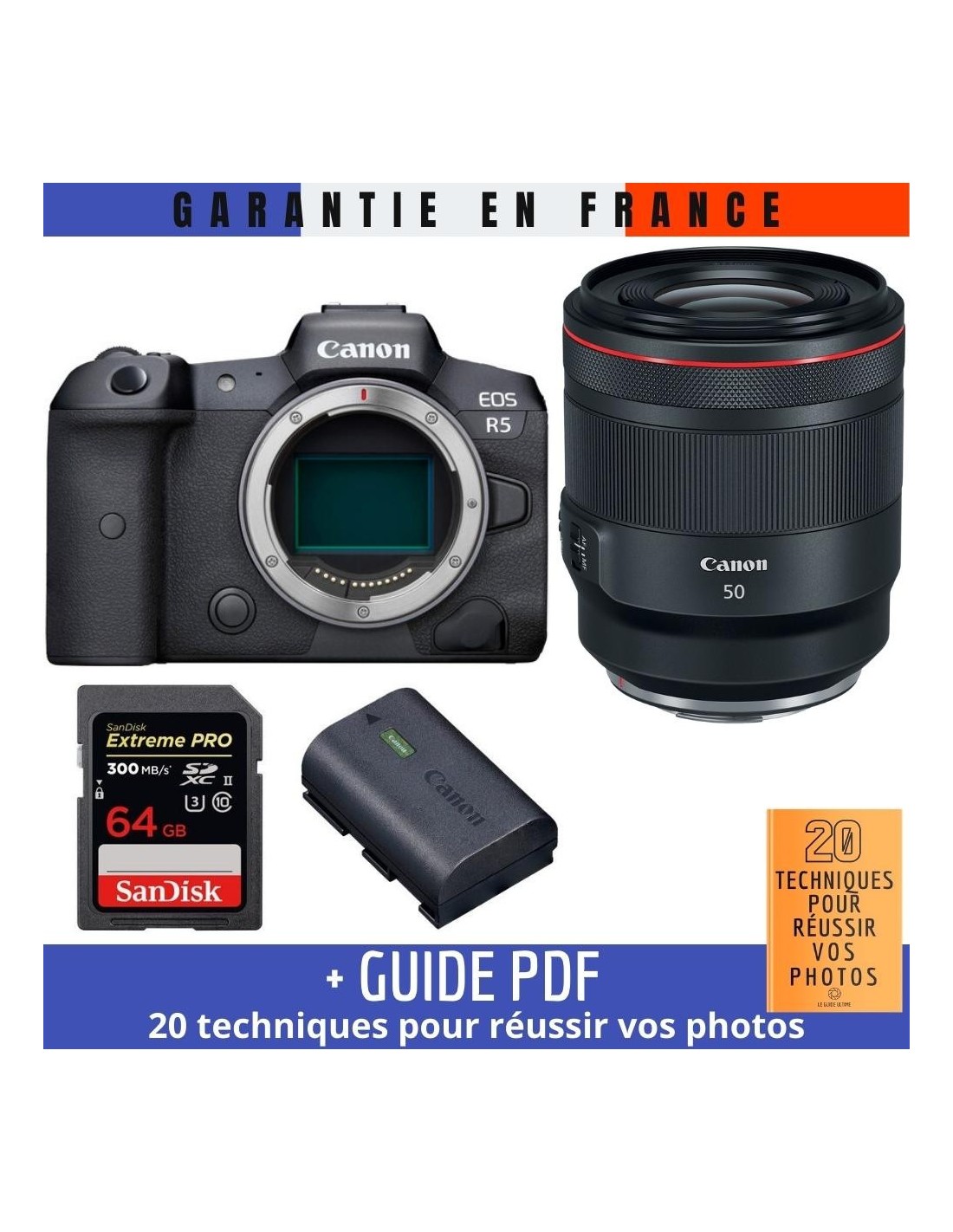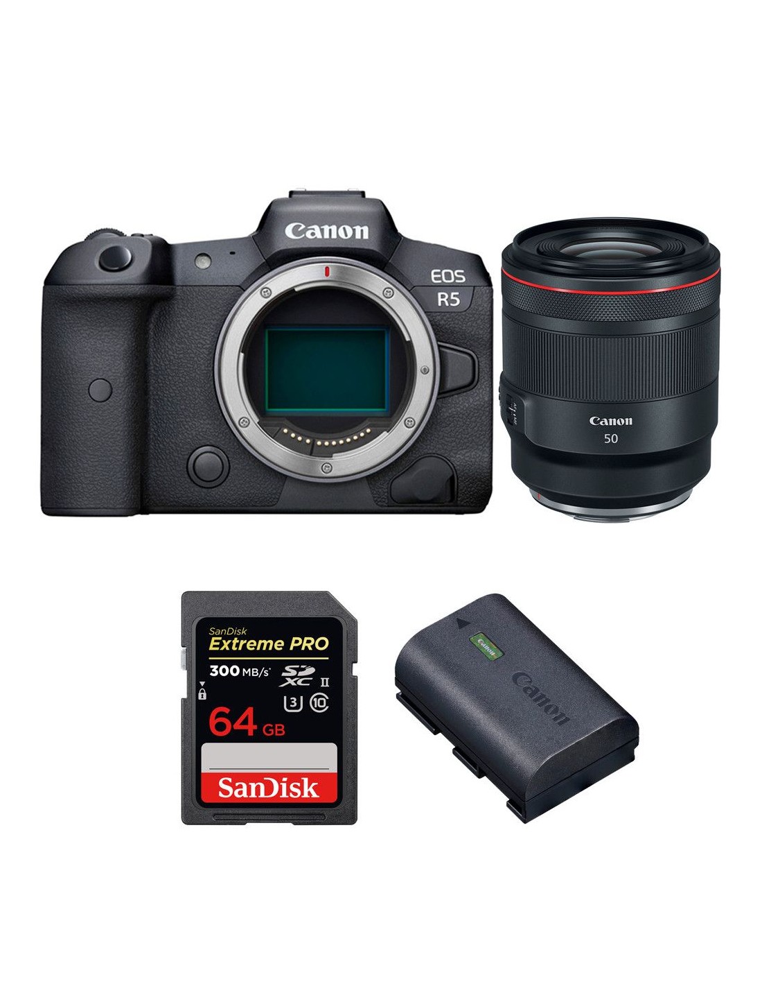 Canon EOS R5 + RF 50mm f/1.2L USM + SanDisk 64GB Extreme PRO UHS-II SDXC 300 MB/s + Canon LP-E6NH - Camara mirrorless