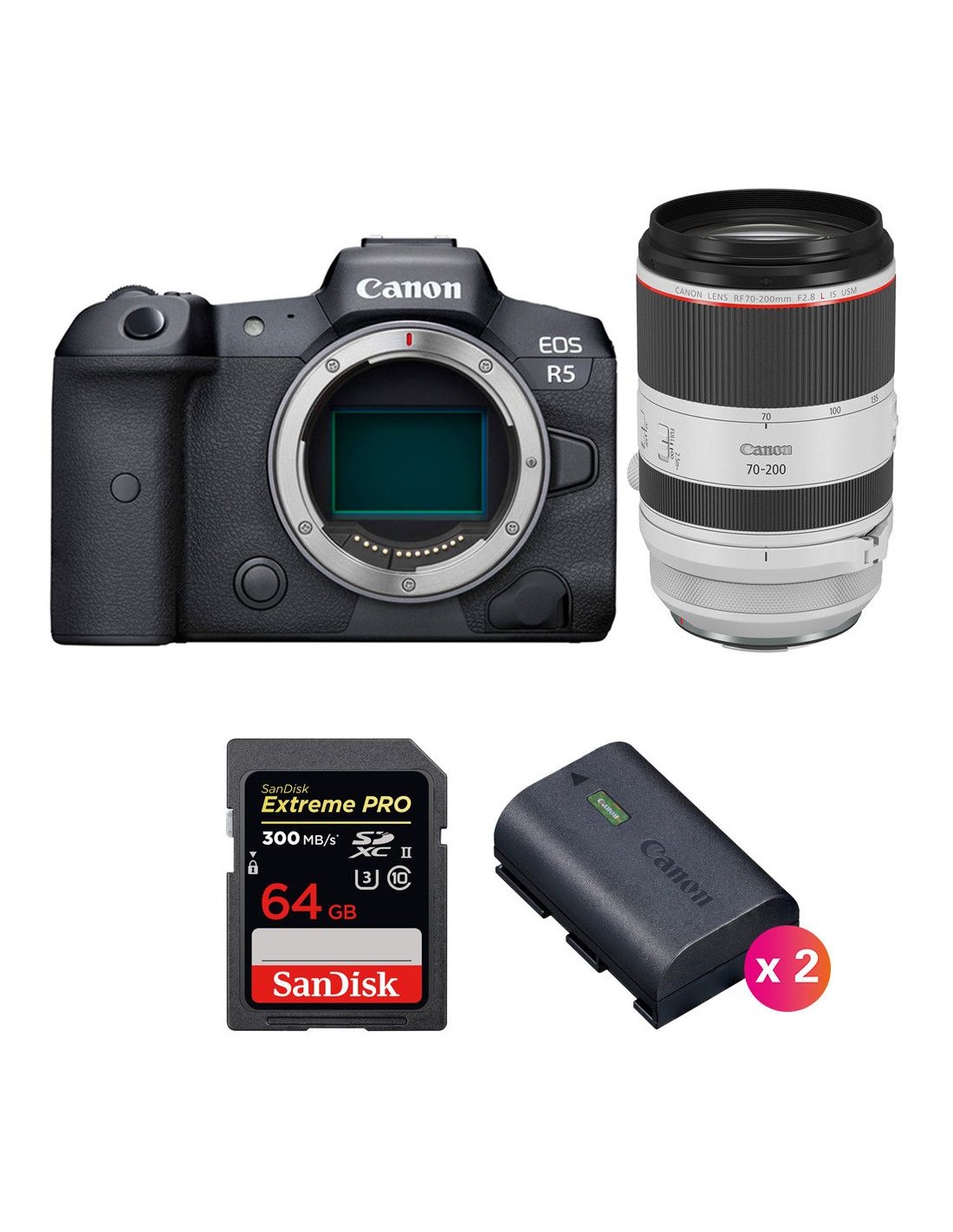 Canon EOS R5 + RF 70-200mm f/2.8L IS USM + SanDisk 64GB Extreme PRO UHS-II SDXC 300 MB/s + 2 Canon LP-E6NH - Camara mirrorless