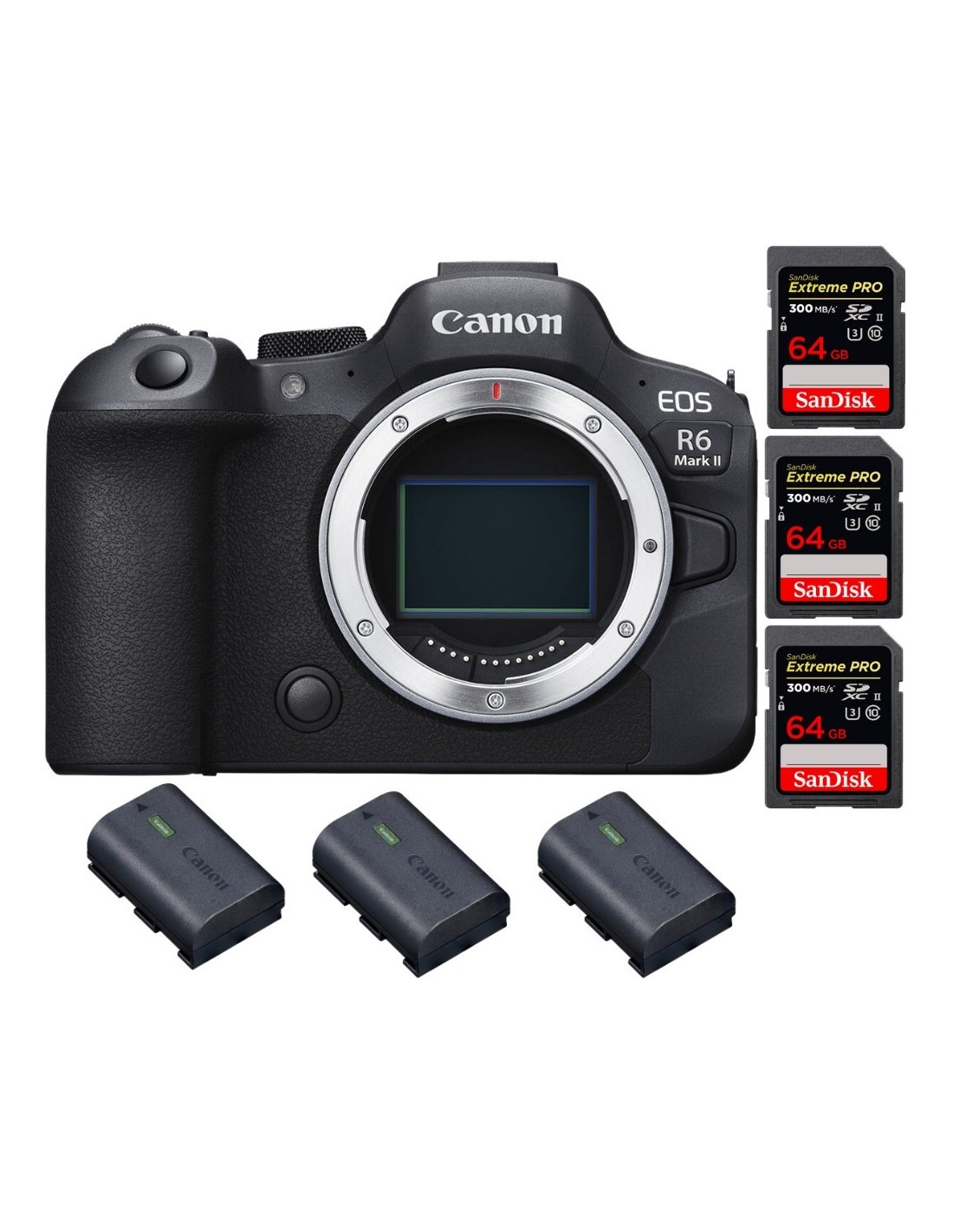 Canon EOS R6 Mark II + 3 SanDisk 64GB Extreme PRO UHS-II 300 MB/s + 3 Canon LP-E6NH - Cámara sin espejo de formato completo