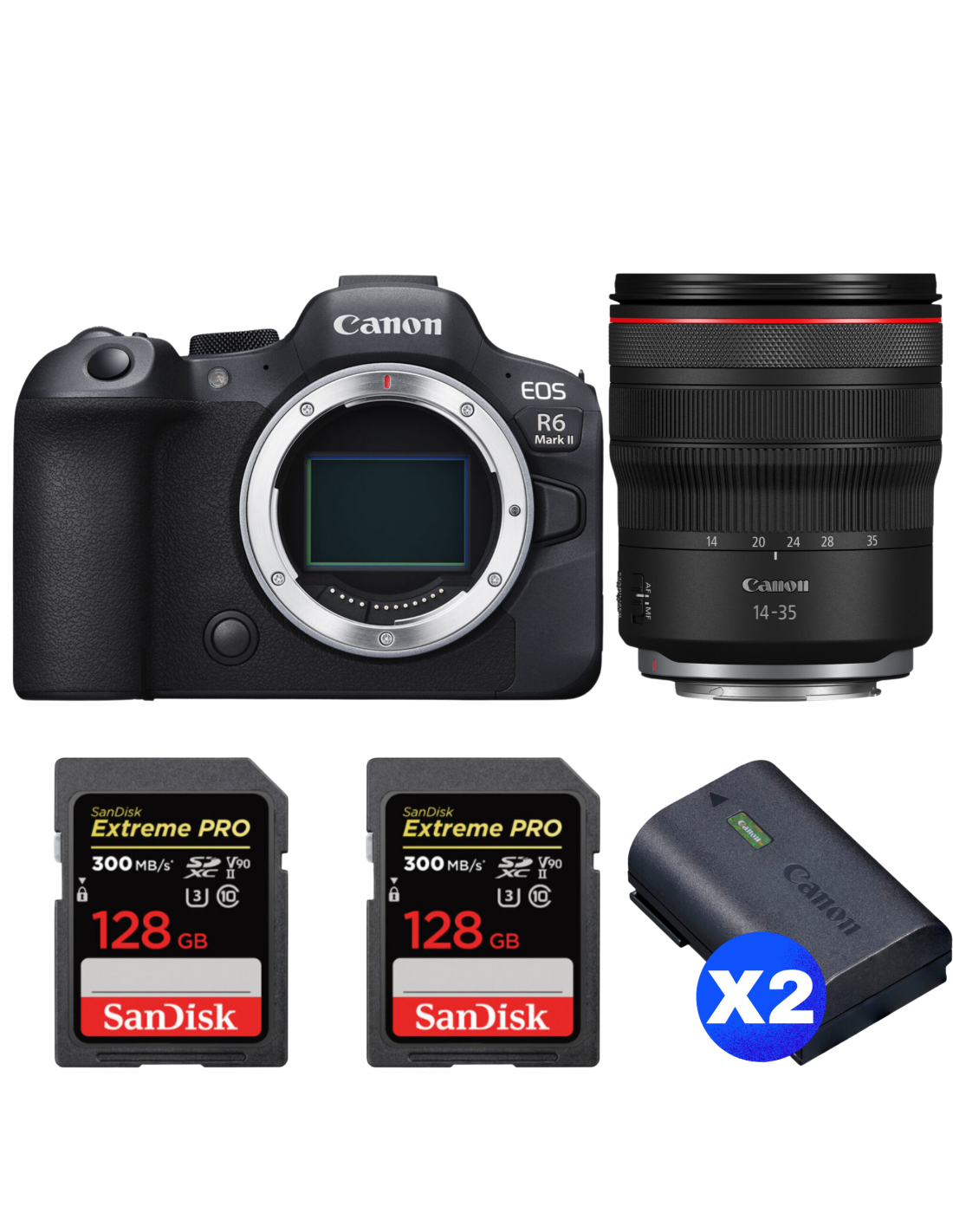 Canon EOS R6 Mark II + RF 14-35mm f/4 L IS USM + 2 SanDisk 128GB Extreme PRO UHS-II SDXC 300 MB/s + 2 Canon LP-E6NH