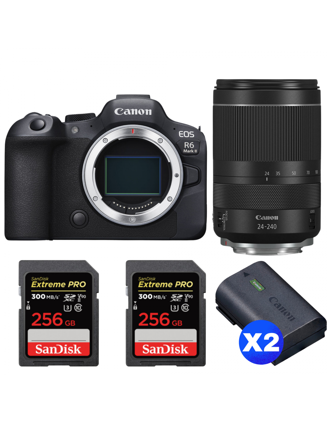 Canon EOS R6 Mark II + RF 24-240mm f/4-6.3 IS USM + 2 SanDisk 256GB Extreme PRO UHS-II SDXC 300 MB/s + 2 Canon LP-E6NH