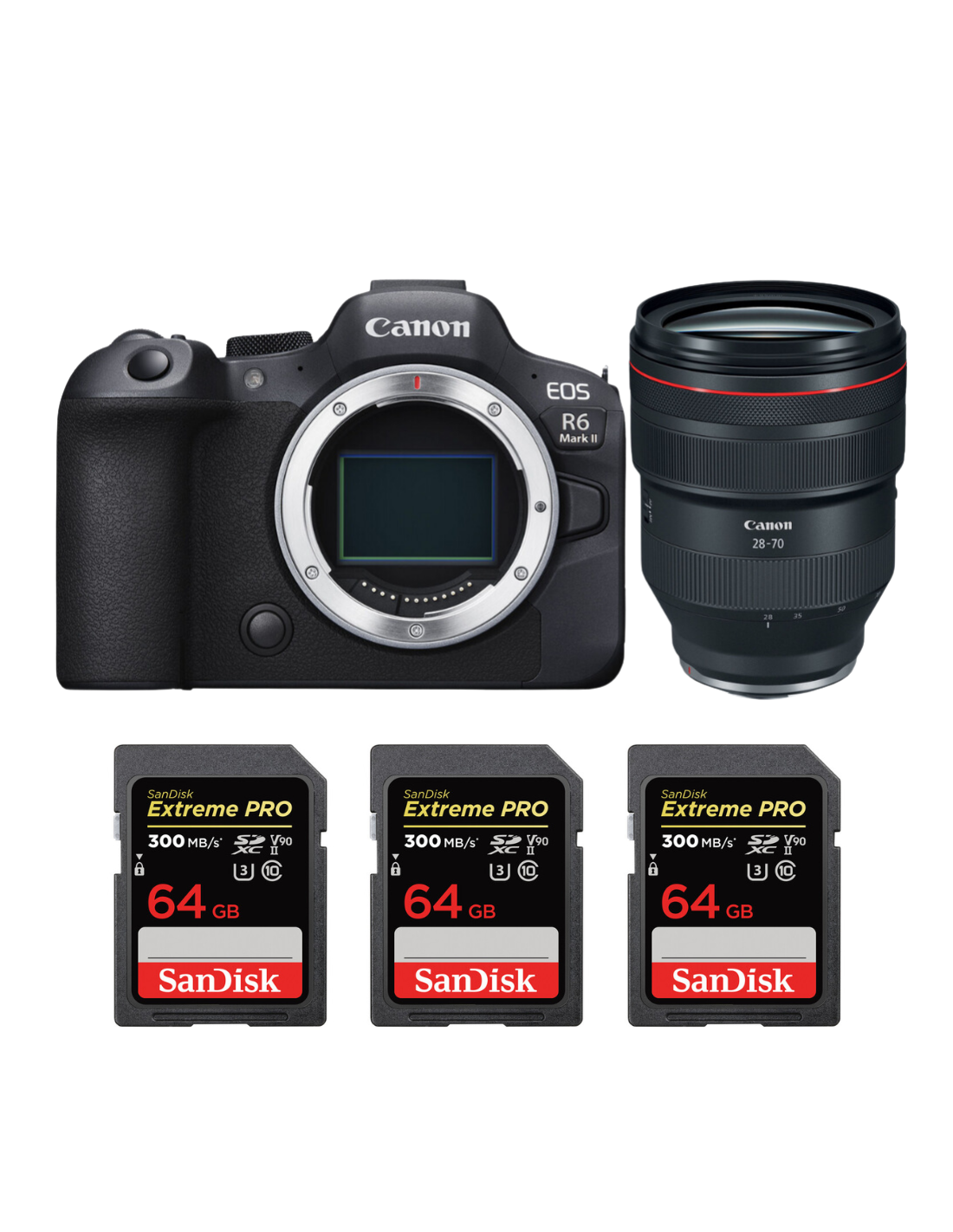 Canon EOS R6 Mark II + RF 28-70 mm f/2 L USM + 3 SanDisk 64GB Extreme PRO UHS-II SDXC 300 MB/s