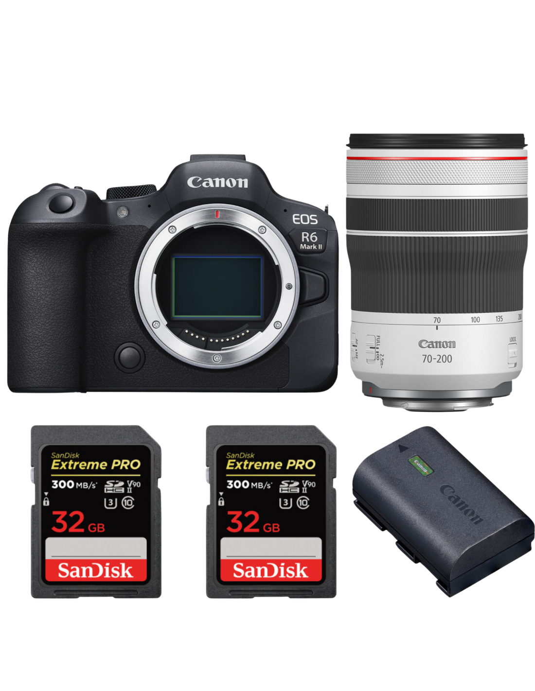 Canon EOS R6 Mark II + RF 70-200mm f/4 L IS USM + 2 SanDisk 32GB Extreme PRO UHS-II SDXC 300 MB/s + 1 Canon LP-E6NH