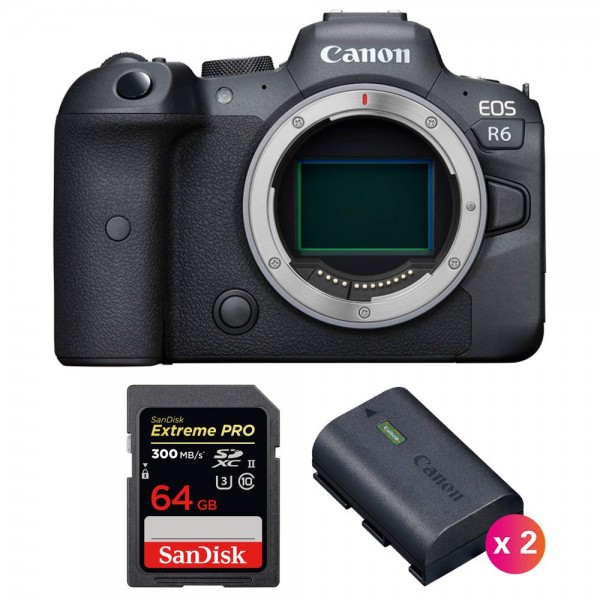 Canon R6 Cuerpo + SanDisk 64GB Extreme PRO UHS-II SDXC 300 MB/s + 2 Canon LP-E6NH