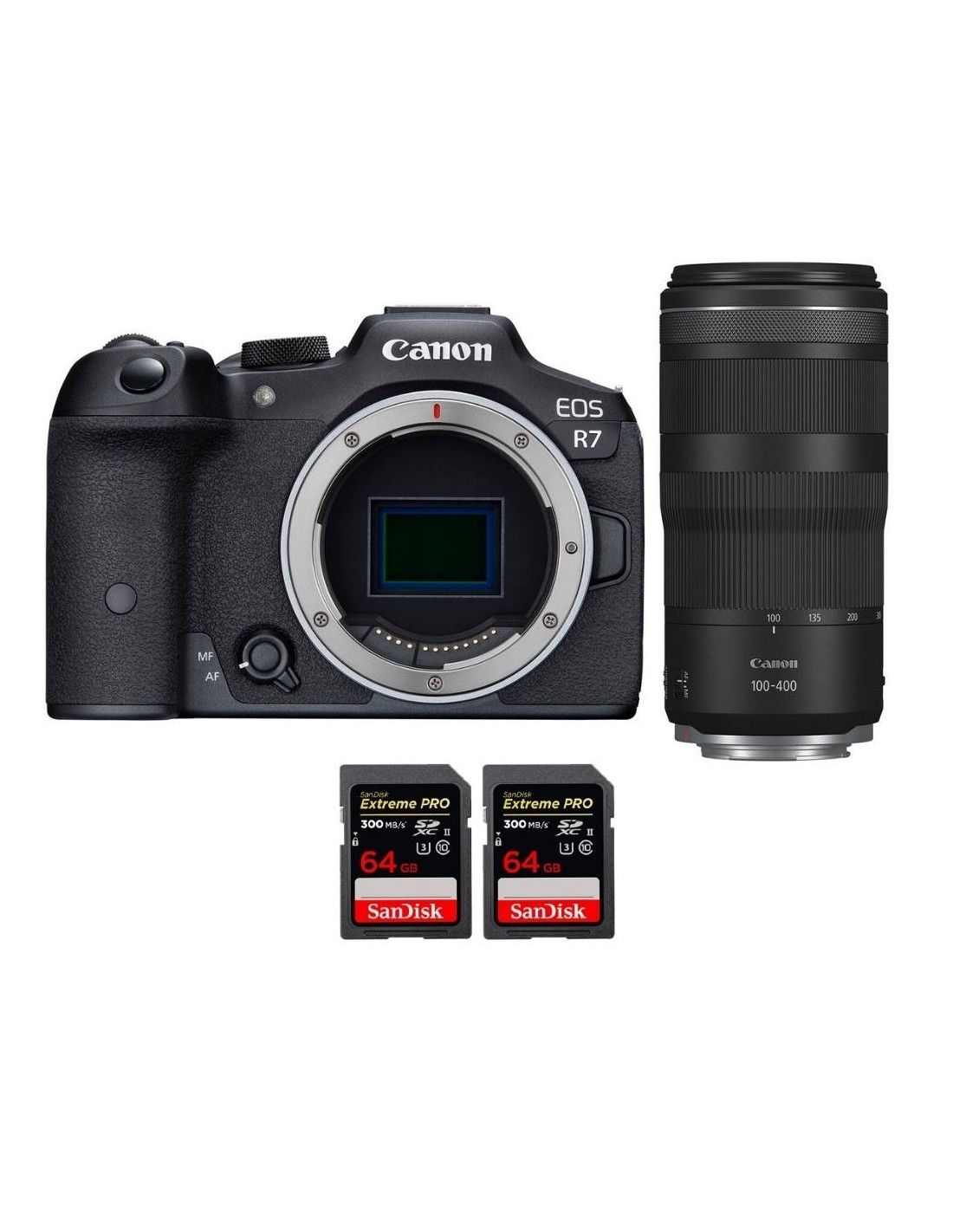 Canon EOS R7 + RF 100-400mm IS + 2 SanDisk 64GB Extreme PRO UHS-II SDXC 300 MB/s - Cámara mirrorless