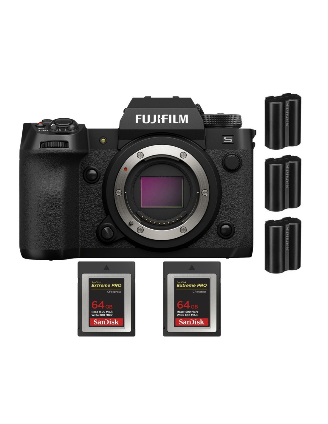 Fujifilm X-H2S + 2 SanDisk 64GB Extreme PRO CFexpress Tipo B + 3 Fujifilm NP-W235 - Dispositivo fotográfico APS-C