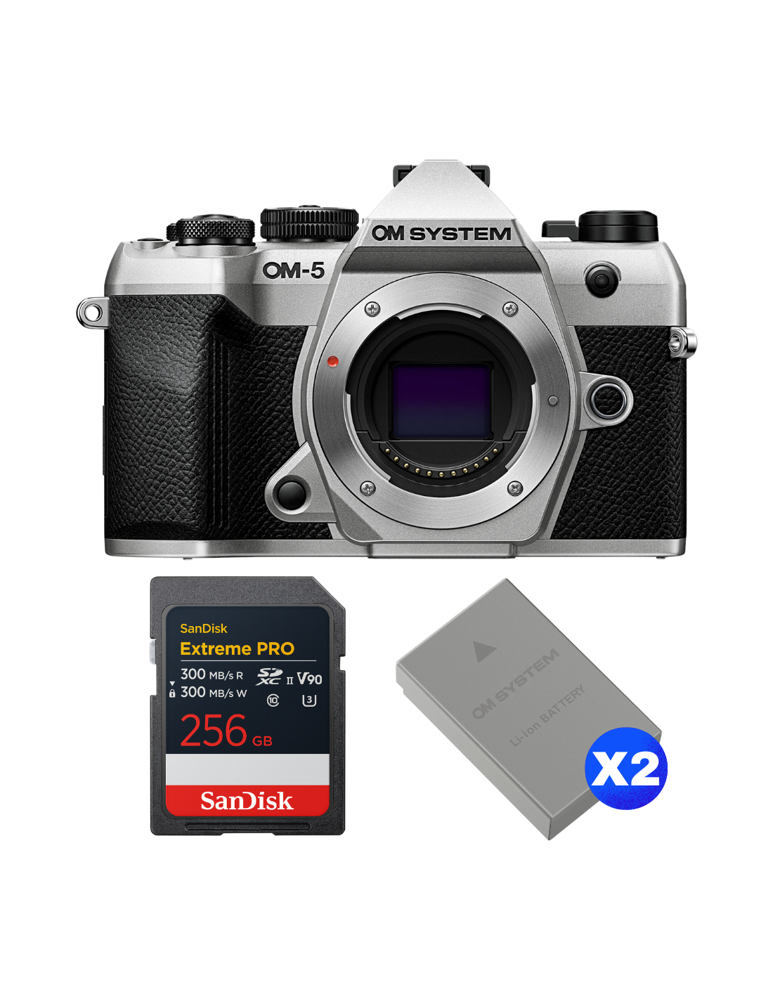 OM SYSTEM OM-5 Mark II Silver + 1 SanDisk 256GB Extreme PRO UHS-II SDXC + 2 OM System BLS-50
