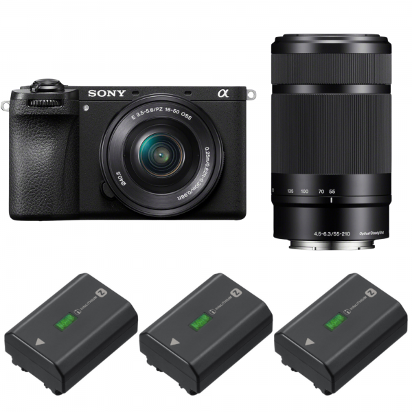 Sony A6700 + 16-50mm f/3.5-5.6 OSS + 55-210mm f/4.5-6.3 OSS + 3 Sony NP-FZ100