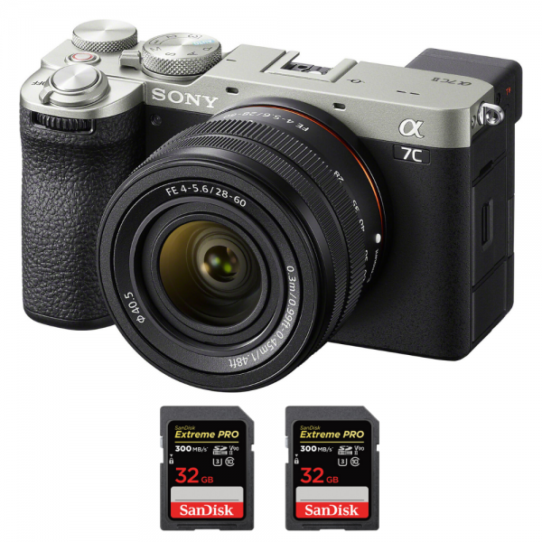 Sony A7C II Silver + FE 28-60mm f/4-5.6 + 2 SanDisk 32GB Extreme PRO UHS-II SDXC 300 MB/s