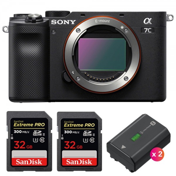 Sony A7C Cuerpo Negro + 2 SanDisk 32GB Extreme PRO UHS-II SDXC 300 MB/s + 2 Sony NP-FZ100 - Camara mirrorless