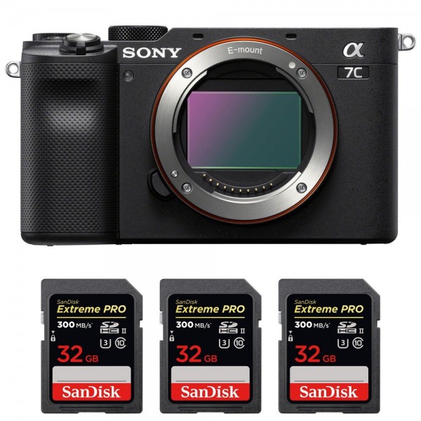 Sony A7C Cuerpo Negro + 3 SanDisk 32GB Extreme PRO UHS-II SDXC 300 MB/s - Camara mirrorless