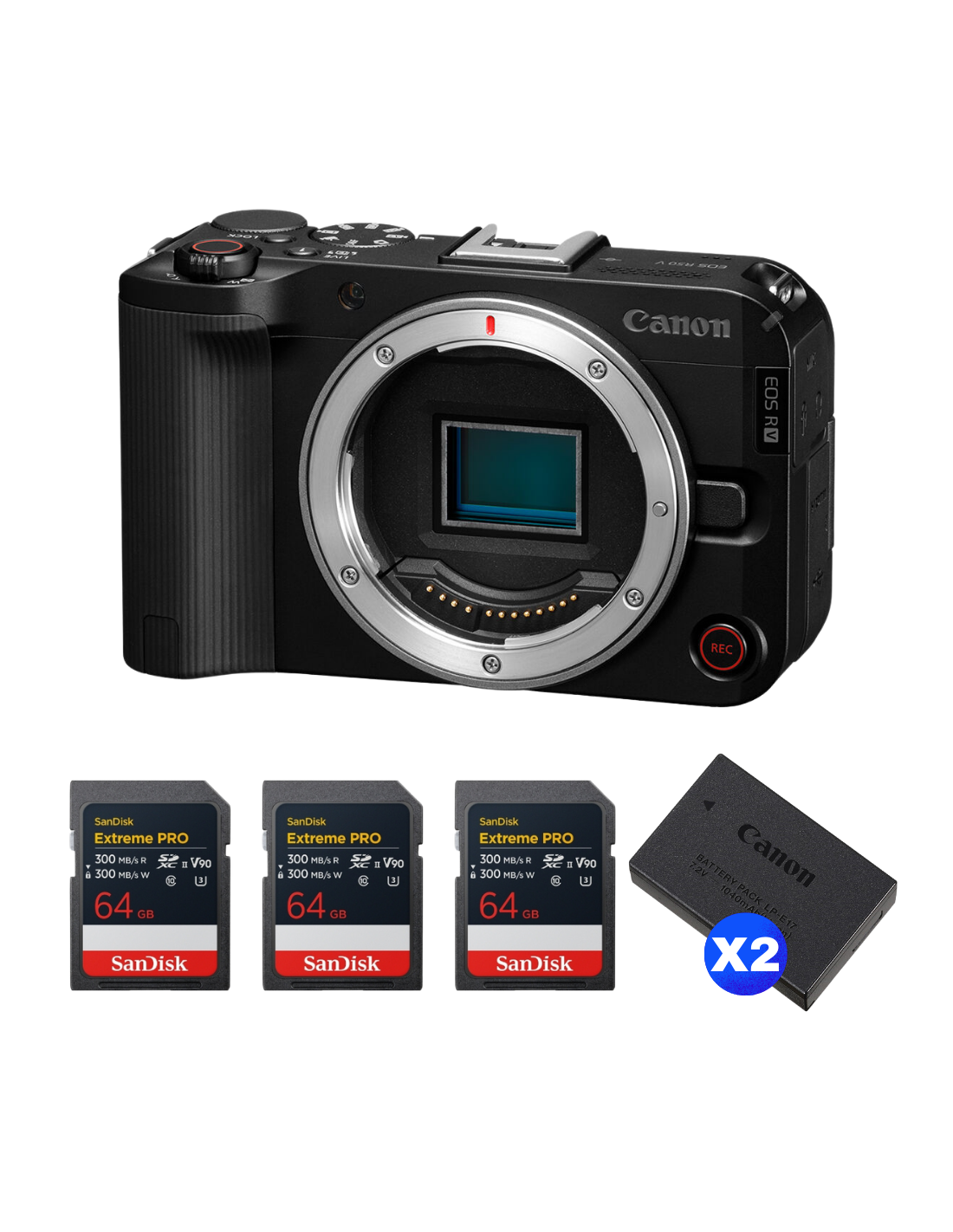 Canon EOS R50 V + 3 SanDisk 64GB Extreme PRO UHS-II SDXC + 2 Canon LP-E17|MCZ DIRECT