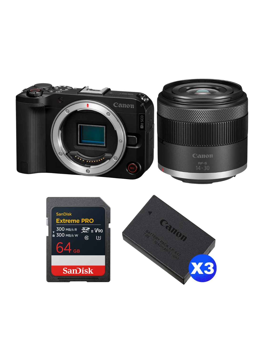 Canon EOS R50 V + RF-S 14-30mm f/4.5-6.3 IS STM PZ + 1 SanDisk 64GB Extreme PRO UHS-II SDXC + 3 Canon LP-E17