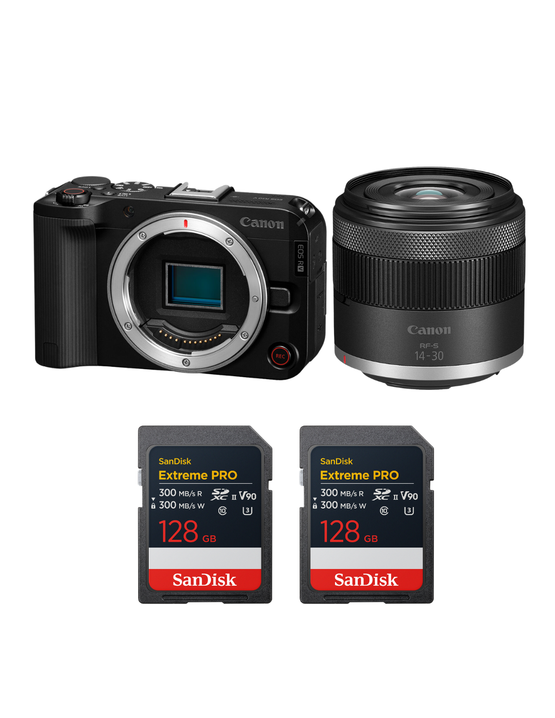 Canon EOS R50 V + RF-S 14-30mm f/4.5-6.3 IS STM PZ + 2 SanDisk 128GB Extreme PRO UHS-II SDXC
