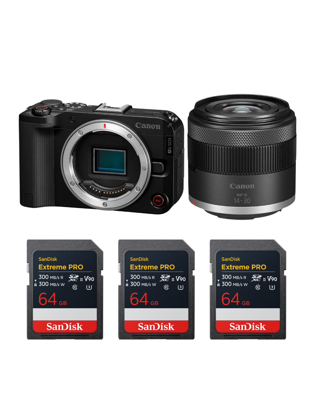 Canon EOS R50 V + RF-S 14-30mm f/4.5-6.3 IS STM PZ + 3 SanDisk 64GB Extreme PRO UHS-II SDXC