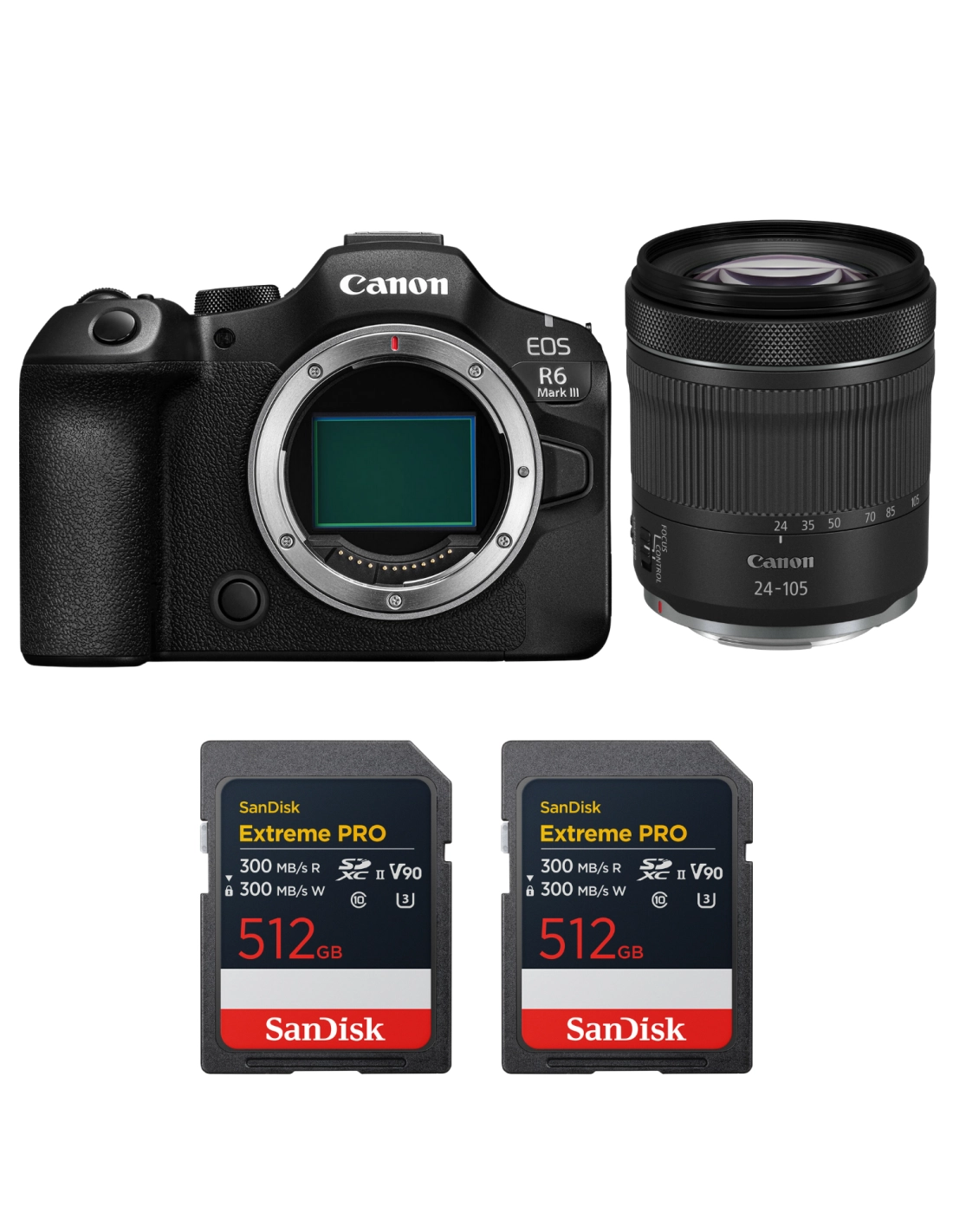 Canon EOS R6 Mark III + RF 24-105mm f/4-7.1 IS STM + 2 SanDisk 512GB Extreme PRO UHS-II SDXC