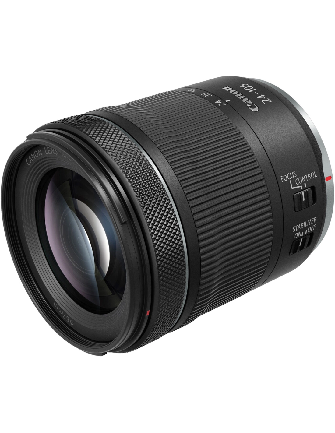 - Objectif RF 24-105mm f/4-7.1 IS STM polyvalent – Zoom 5× couvrant du 24 mm grand-angle au 105 mm portrait, avec autofocus STM silencieux, stabilisation optique 5 stops et mode Center Macro (mise au point jusqu’à 13 cm, grossissement 0,5×) pour les gros plans.