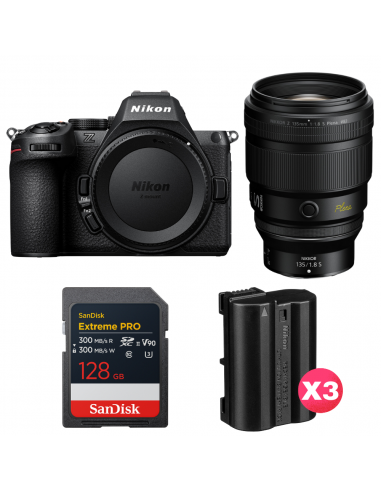 Nikon Z5 II + 135mm f/1.8 S Plena + 1 SanDisk 128GB Extreme PRO UHS-II SDXC + 3 Nikon EN-EL15c