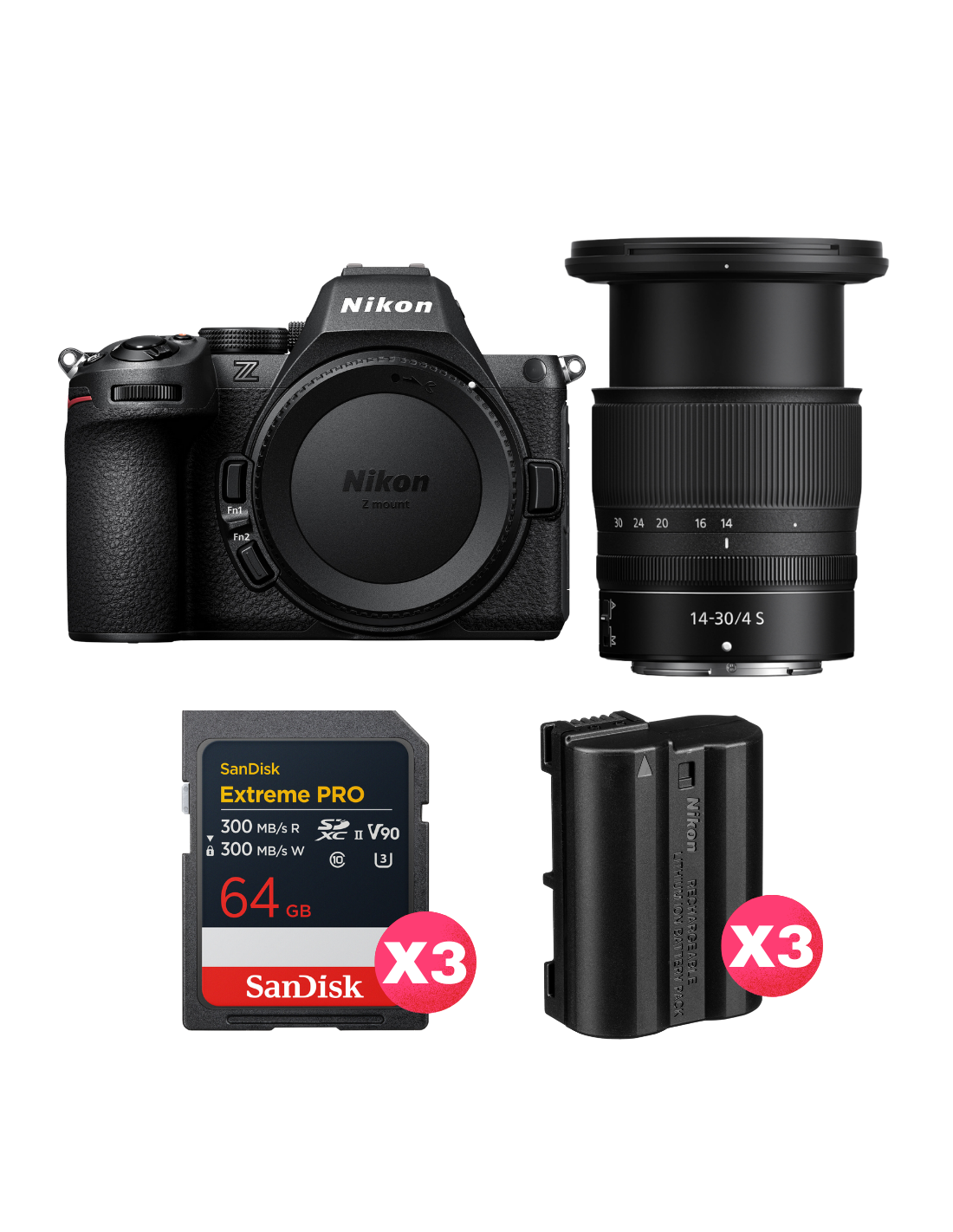 Nikon Z5 II + 14-30mm f/4 S + 3 SanDisk 64GB Extreme PRO UHS-II SDXC + 3 Nikon EN-EL15c