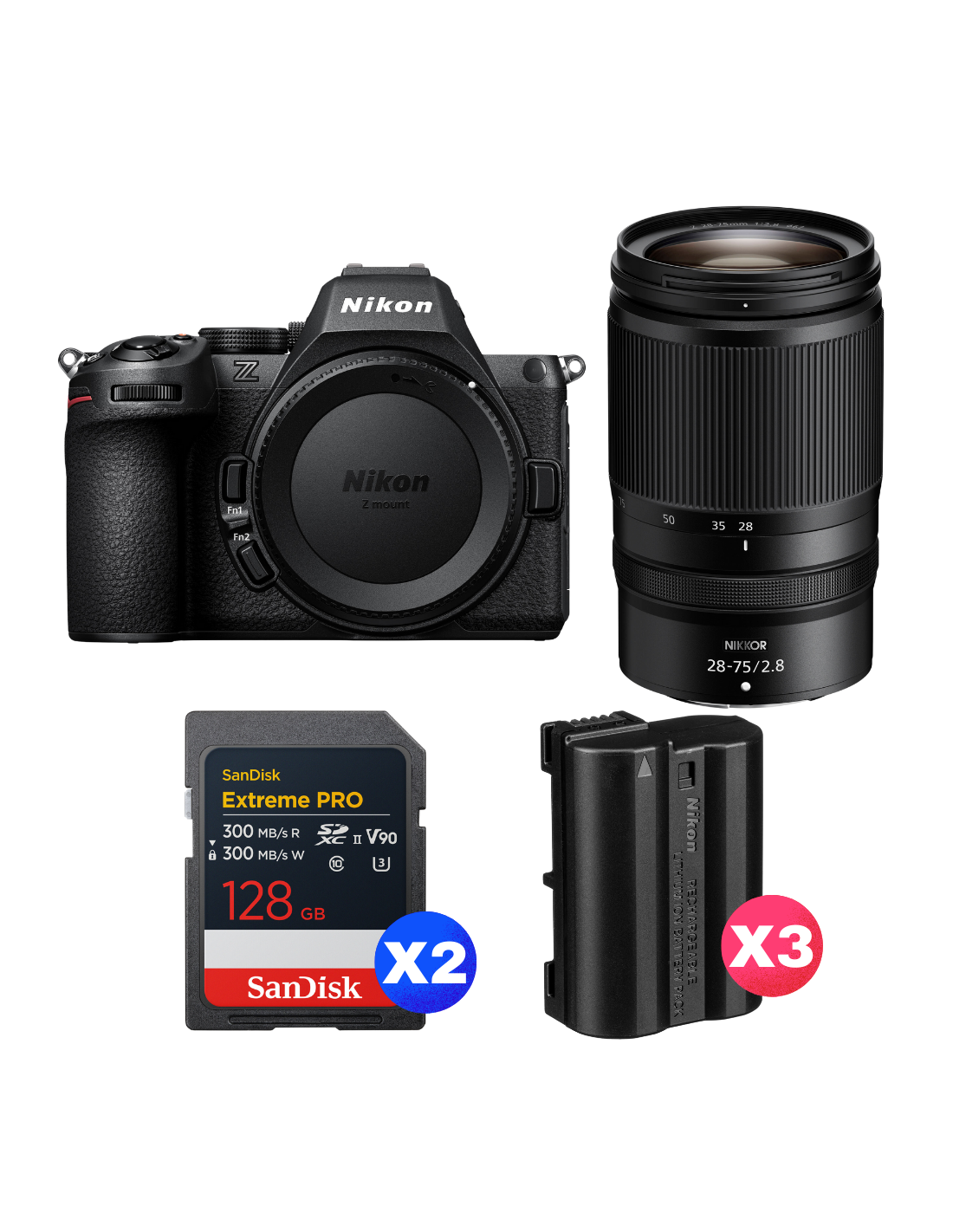Nikon Z5 II + 28-75mm f/2.8 + 2 SanDisk 128GB Extreme PRO UHS-II SDXC + 3 Nikon EN-EL15c