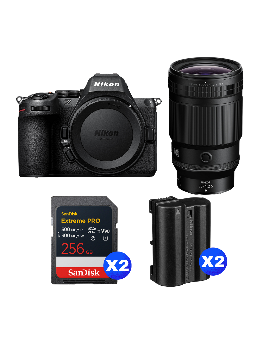 Nikon Z5 II + 35mm f/1.2 S + 2 SanDisk 256GB Extreme PRO UHS-II SDXC + 2 Nikon EN-EL15c
