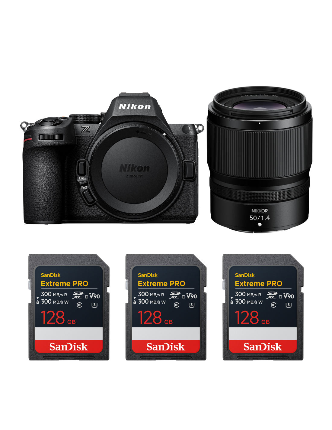 Nikon Z5 II + 50mm f/1.4 + 3 SanDisk 128GB Extreme PRO UHS-II SDXC
