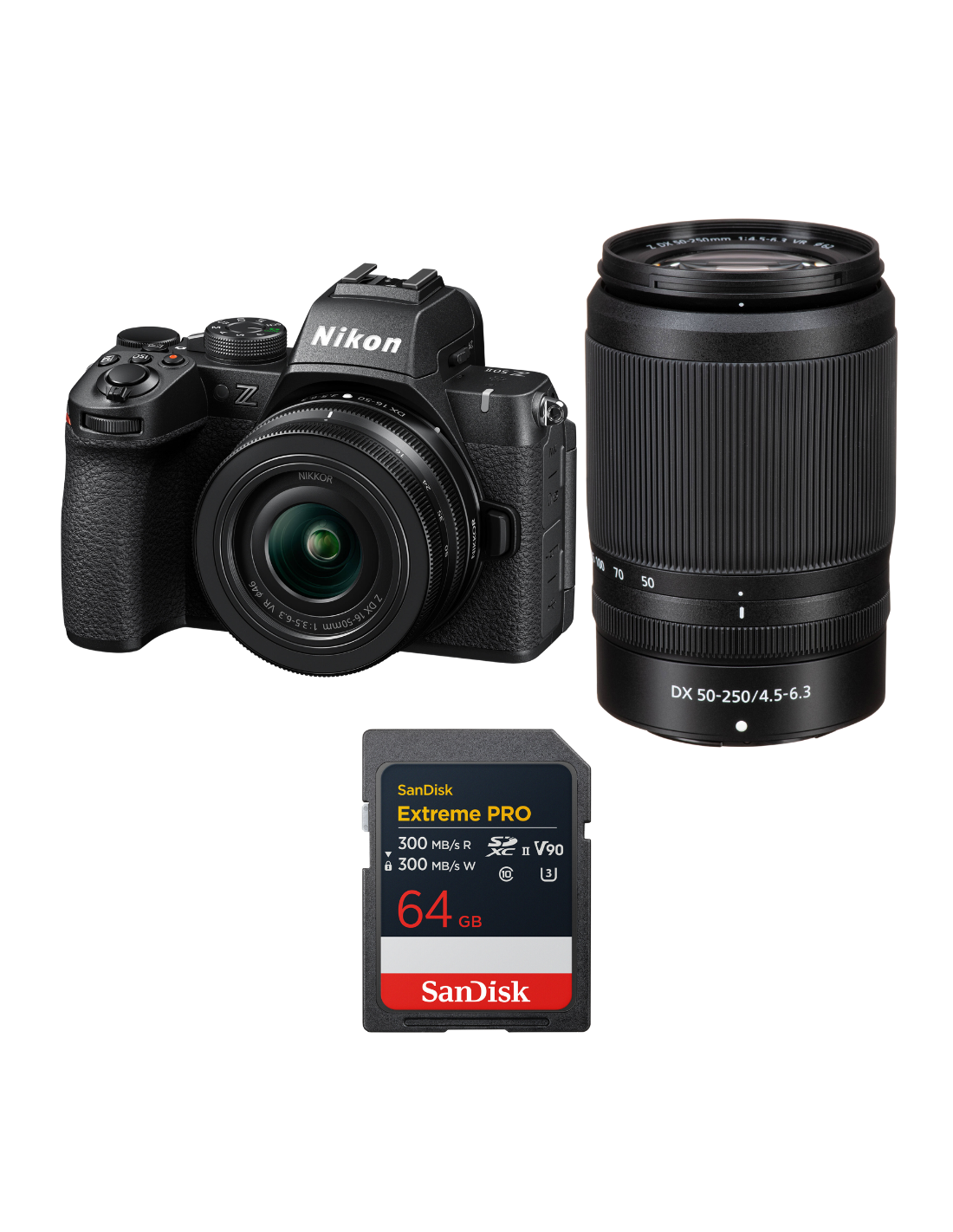 Nikon Z50 II + 16-50mm + 50-250mm + 1 SanDisk 64GB Extreme PRO UHS-II SDXC