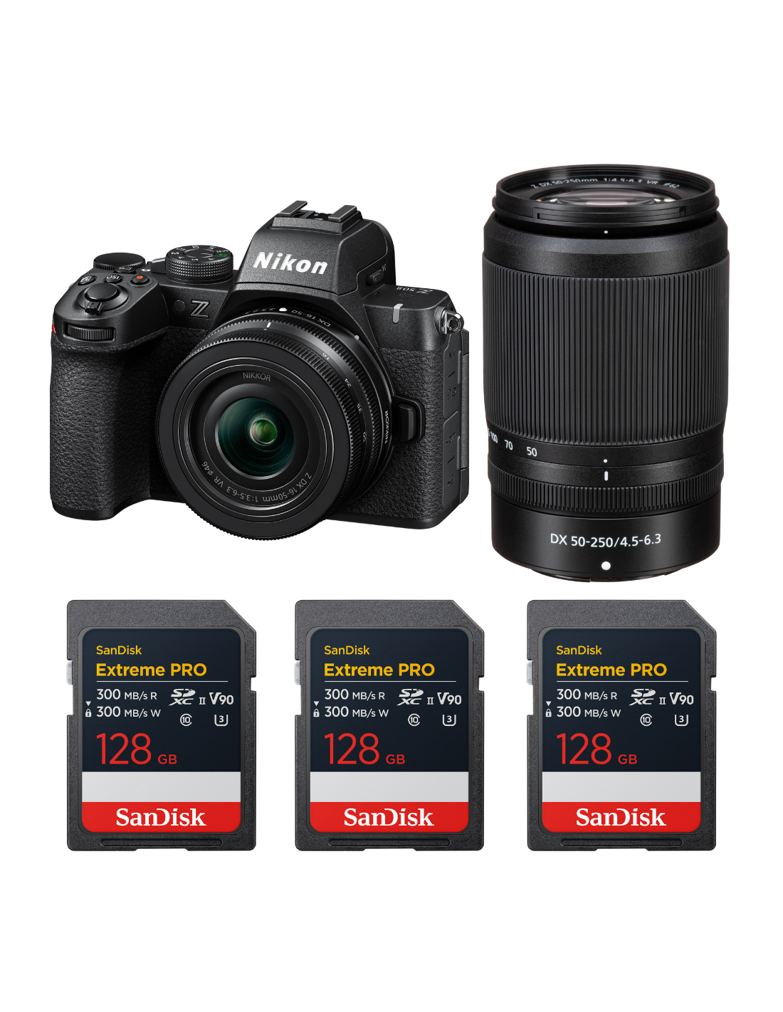 Nikon Z50 II + 16-50mm + 50-250mm + 3 SanDisk 128GB Extreme PRO UHS-II SDXC
