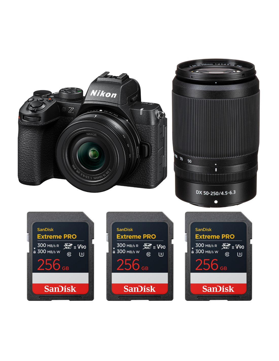 Nikon Z50 II + 16-50mm + 50-250mm + 3 SanDisk 256GB Extreme PRO UHS-II SDXC